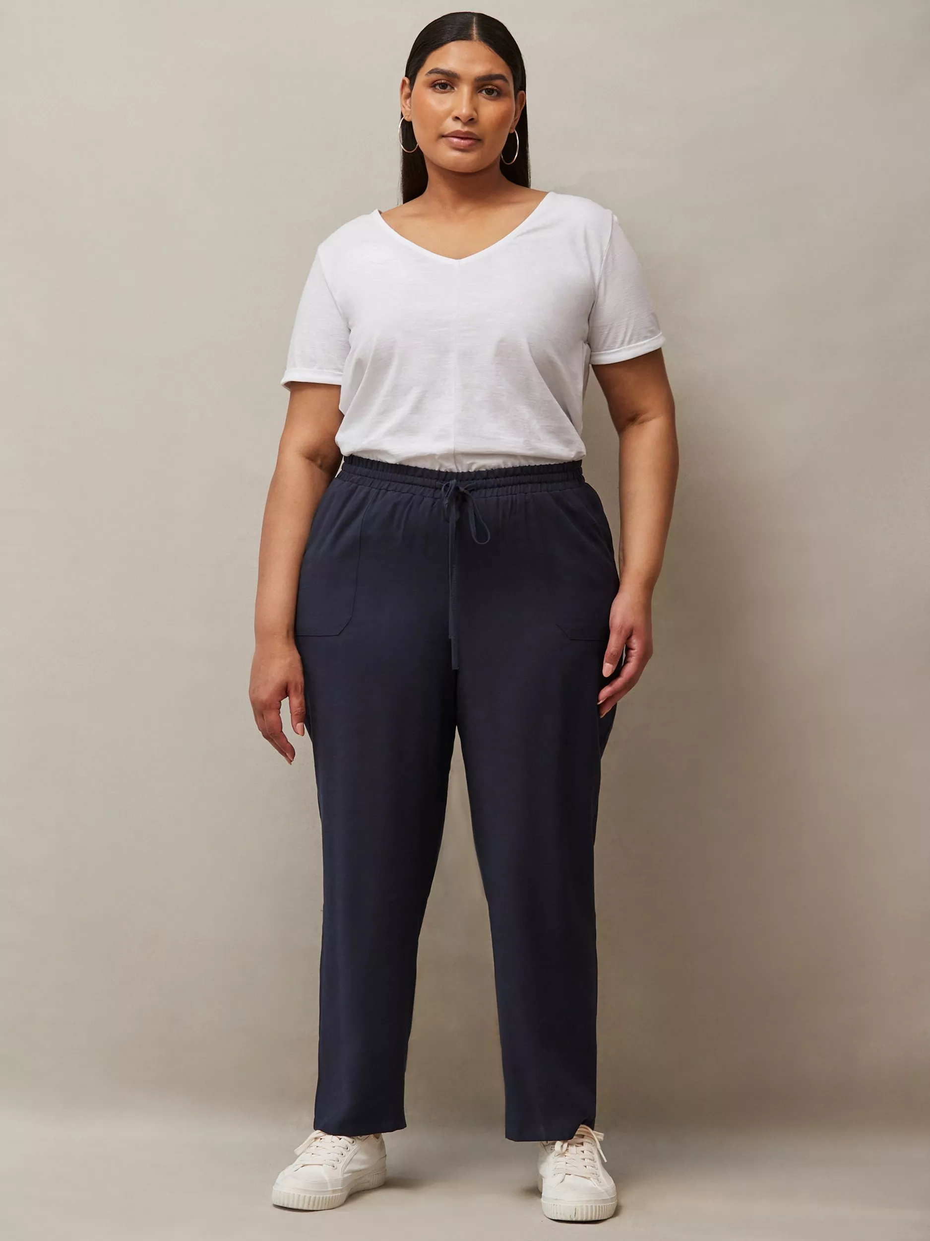 Cut from a soft viscose blend fabric, these Tapered Trousers are a wardrobe essential and will see you through the whole year. They have an adjustable elasticated waistband to ensure they fit perfectly without any restrictions. The patch pockets are there for your convenience and when you need them most. The tapered leg silhouette is just so flattering, making you want to wear them time and time again.