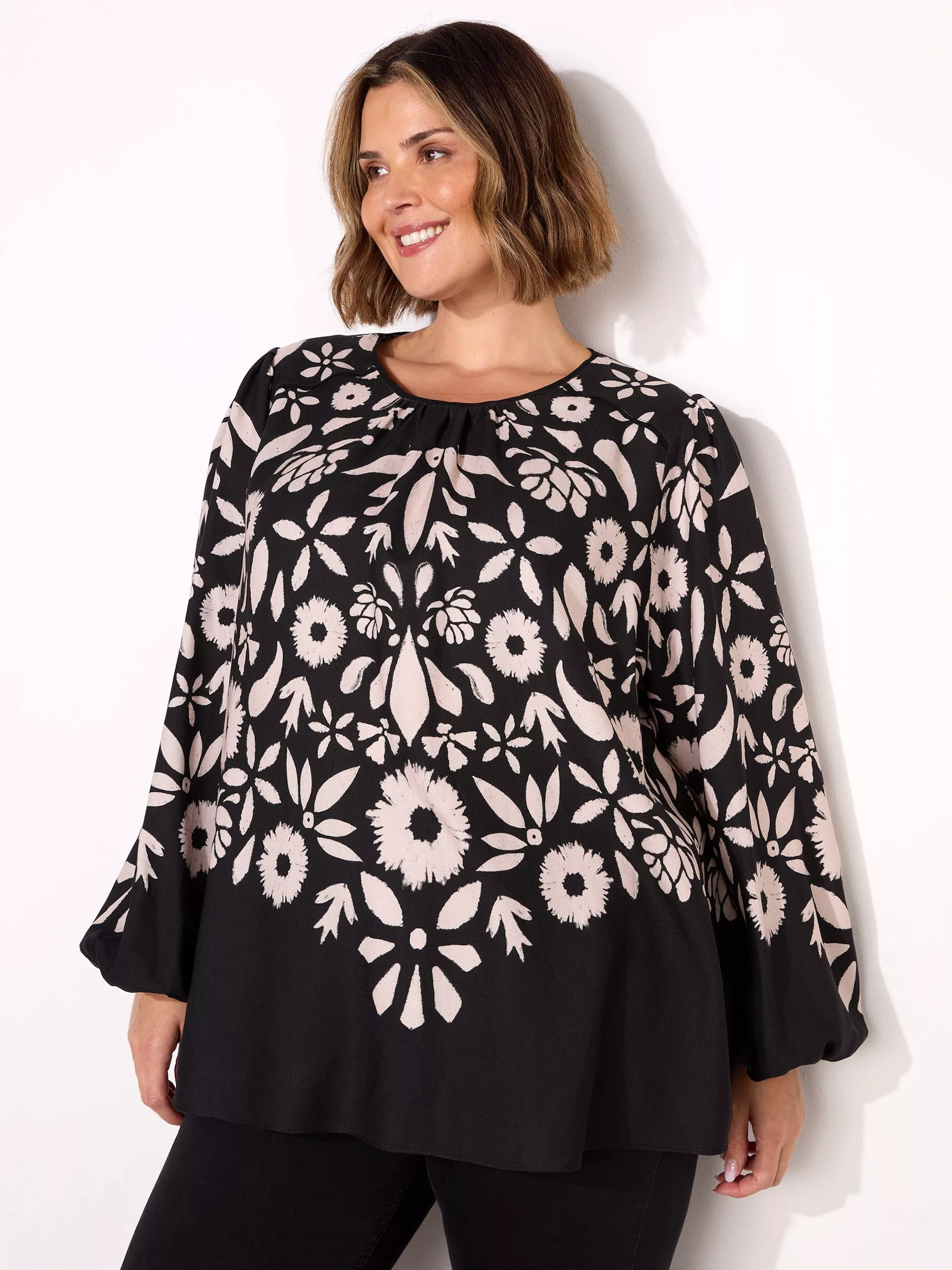 This Graphic Floral Placement Blouse is cut from a soft woven fabric making you want to wear it time and time again. It has a flattering round neckline and a keyhole and button fastening for ease. It slips on easily over your head so you can instantly have that throw on and go look in seconds. Style this with black jeggings for the perfect daytime look.