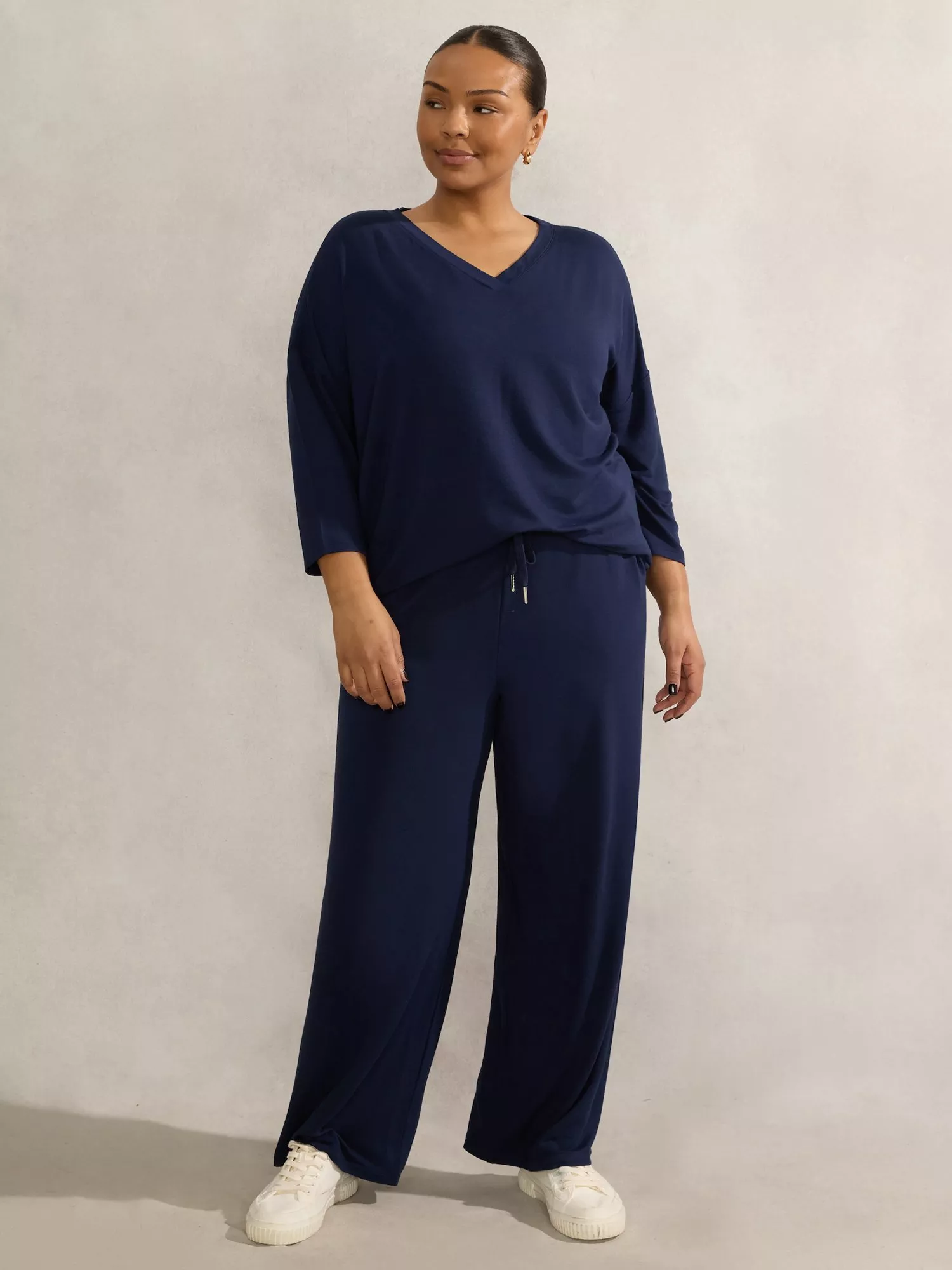 Not your average staple, this jersey top from Live Unlimited features a classic v-neck and three-quarter length sleeves.