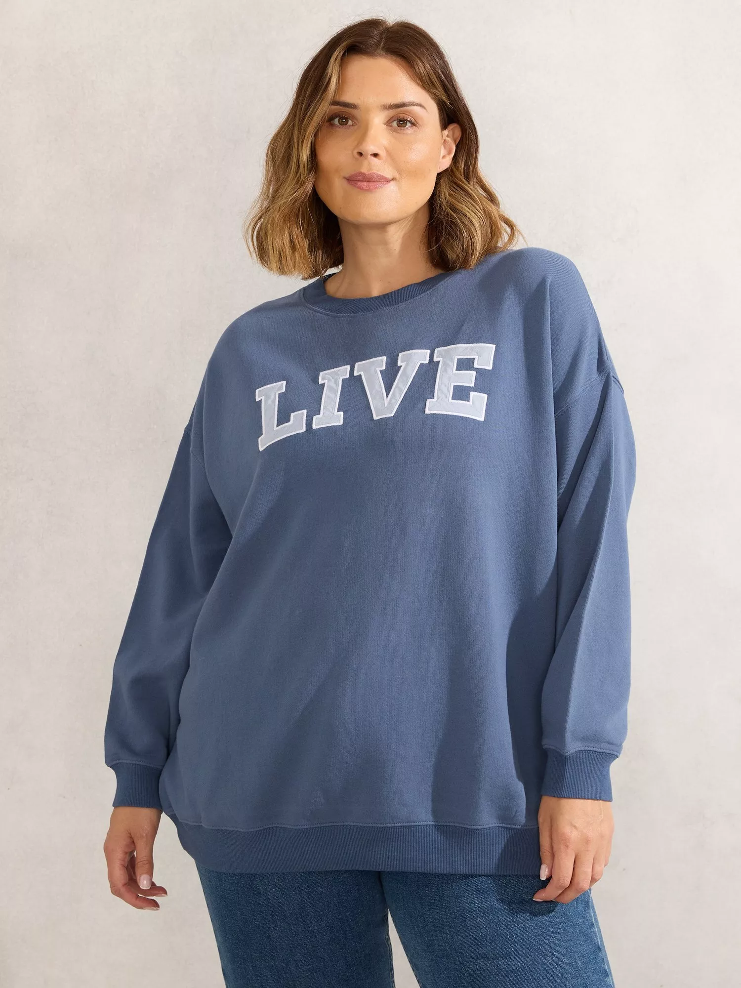An all-year essential, this slogan sweatshirt by Live Unlimited Curve is made from cotton for comfortable wear.