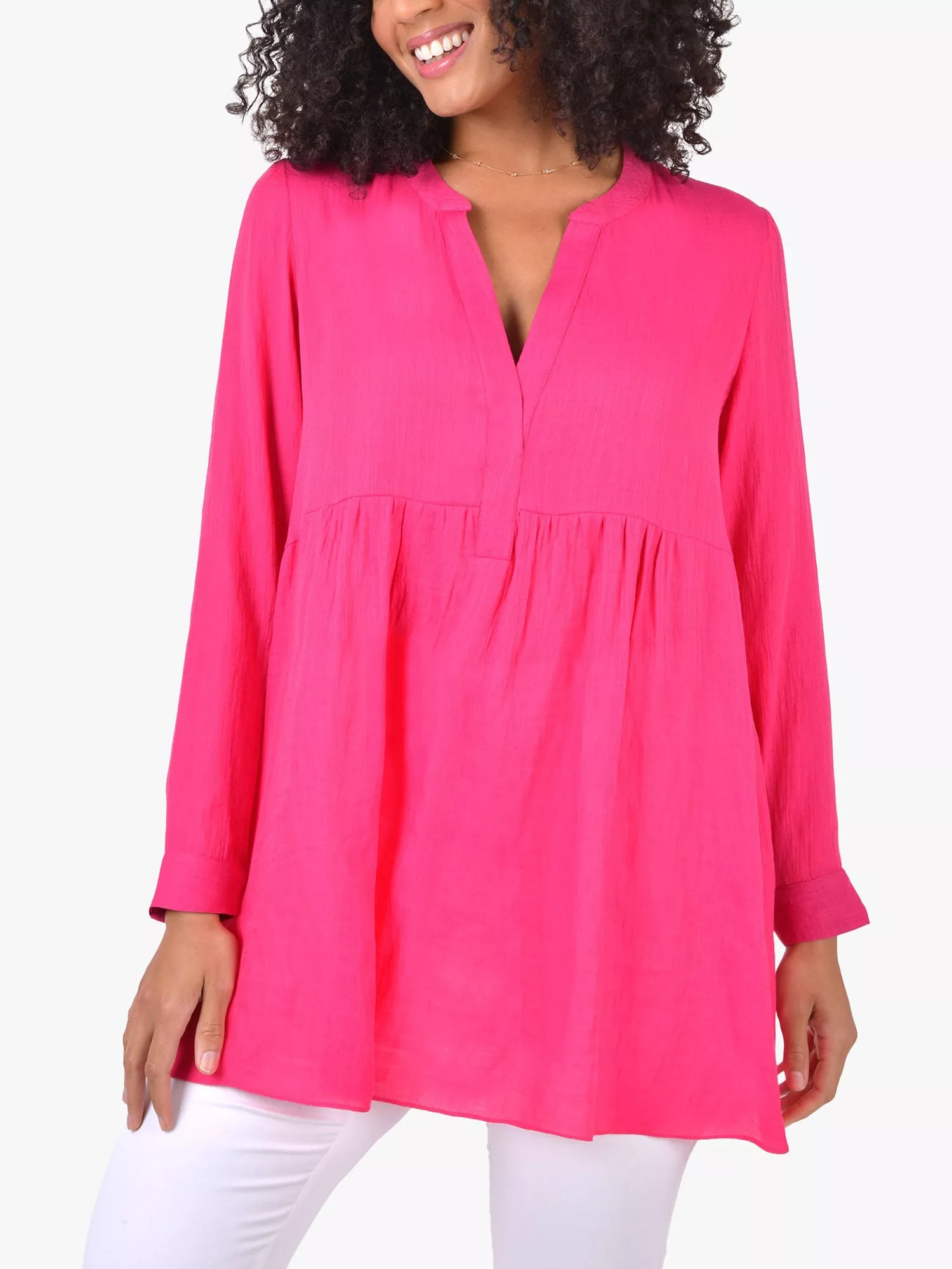 Framed with a v-neckline and long sleeves, it is made from soft fabric that withstands creasing and slips on well with tonal denim ready for the summer.