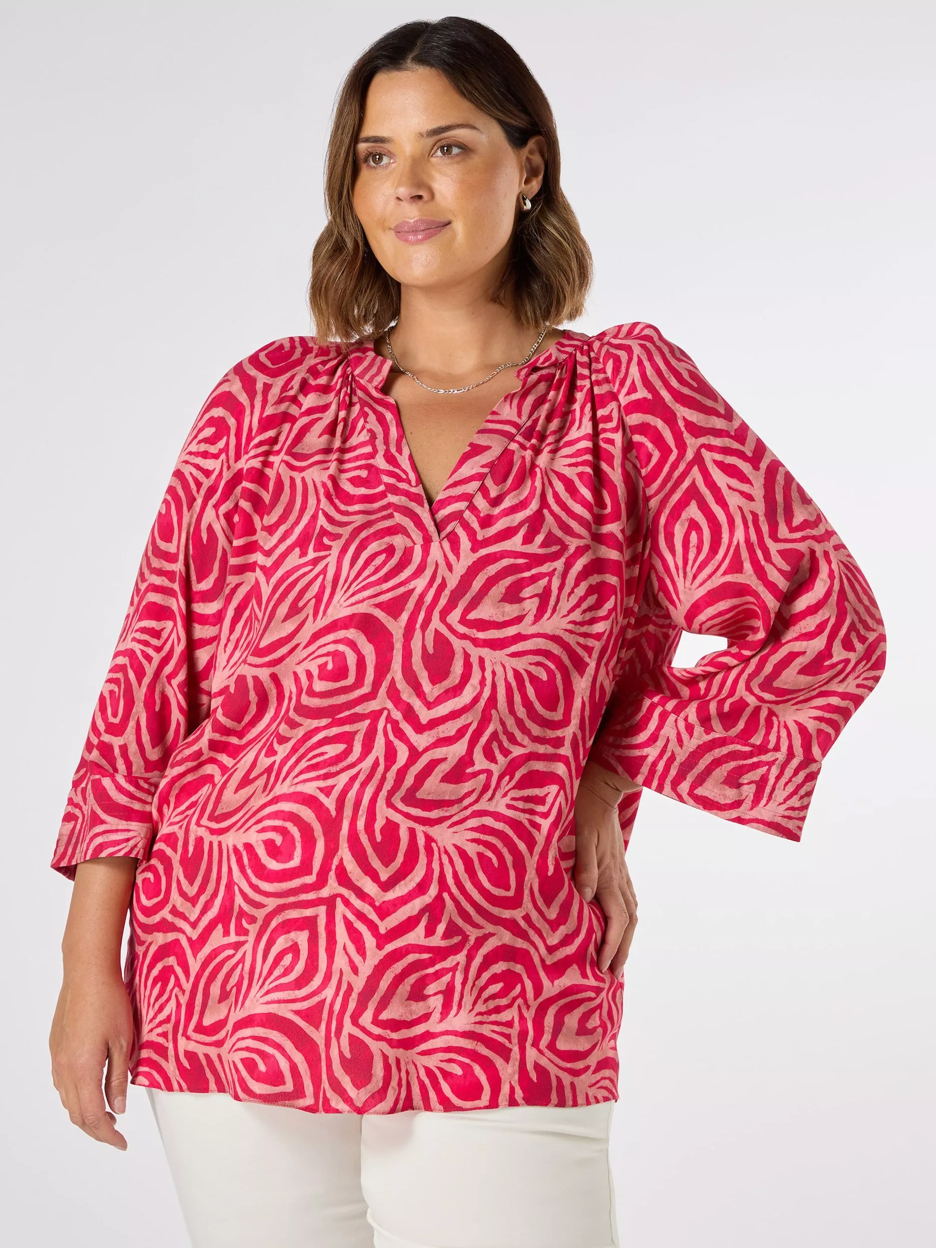Leave block colours behind this season and embrace bold prints, starting with this flattering V-neck design from Live Unlimited.