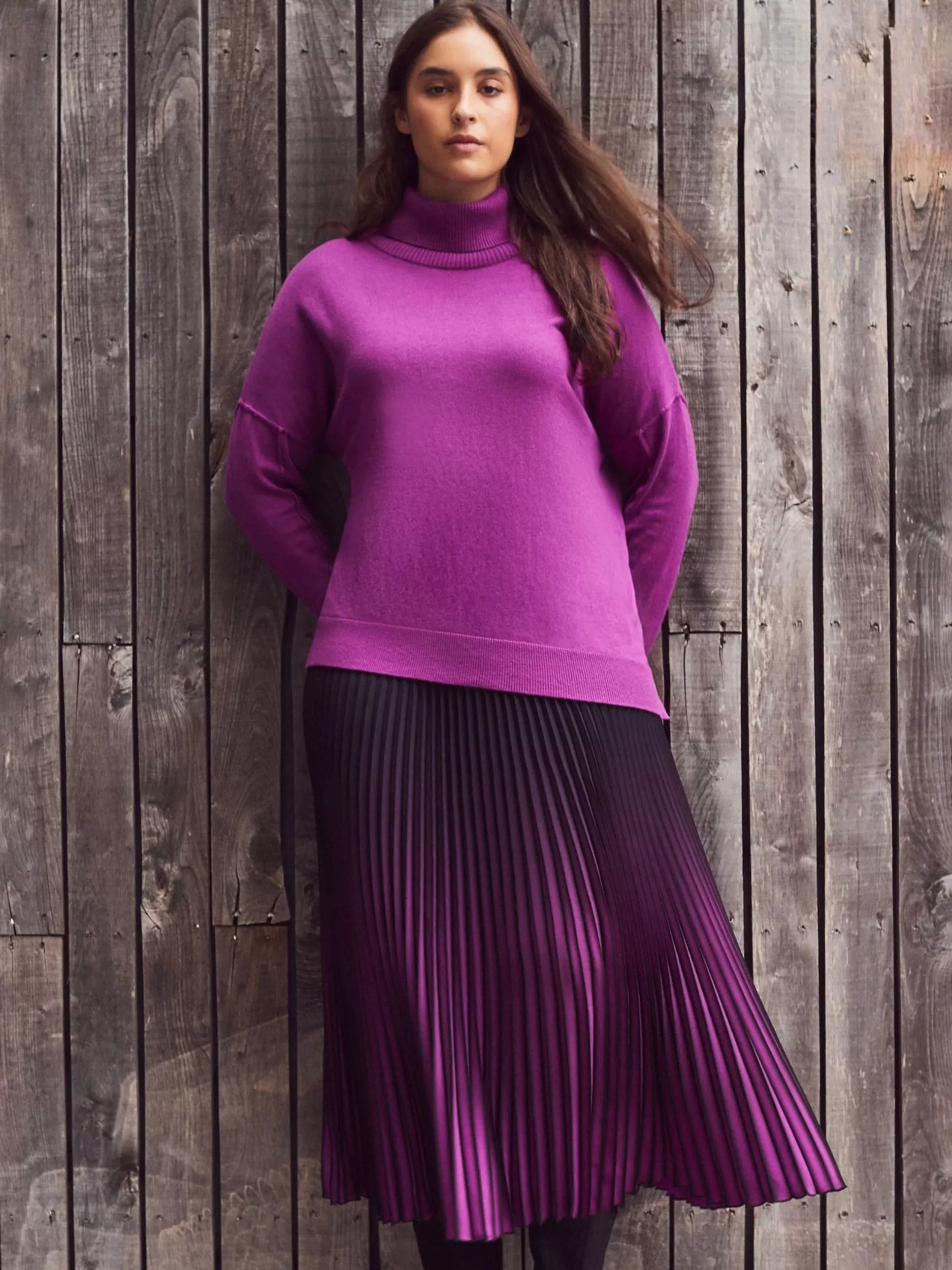 Stay effortlessly cosy in this Roll Neck Jumper, featuring a soft roll neckline and dropped shoulders for a relaxed, laid-back fit. Detailed with subtle seams and finished with ribbed trims at the neck, cuffs, and hem, it adds texture and shape to your everyday look. Side splits and a stepped hem offer ease of movement and a modern silhouette, making it a go-to piece for layering in cooler weather.