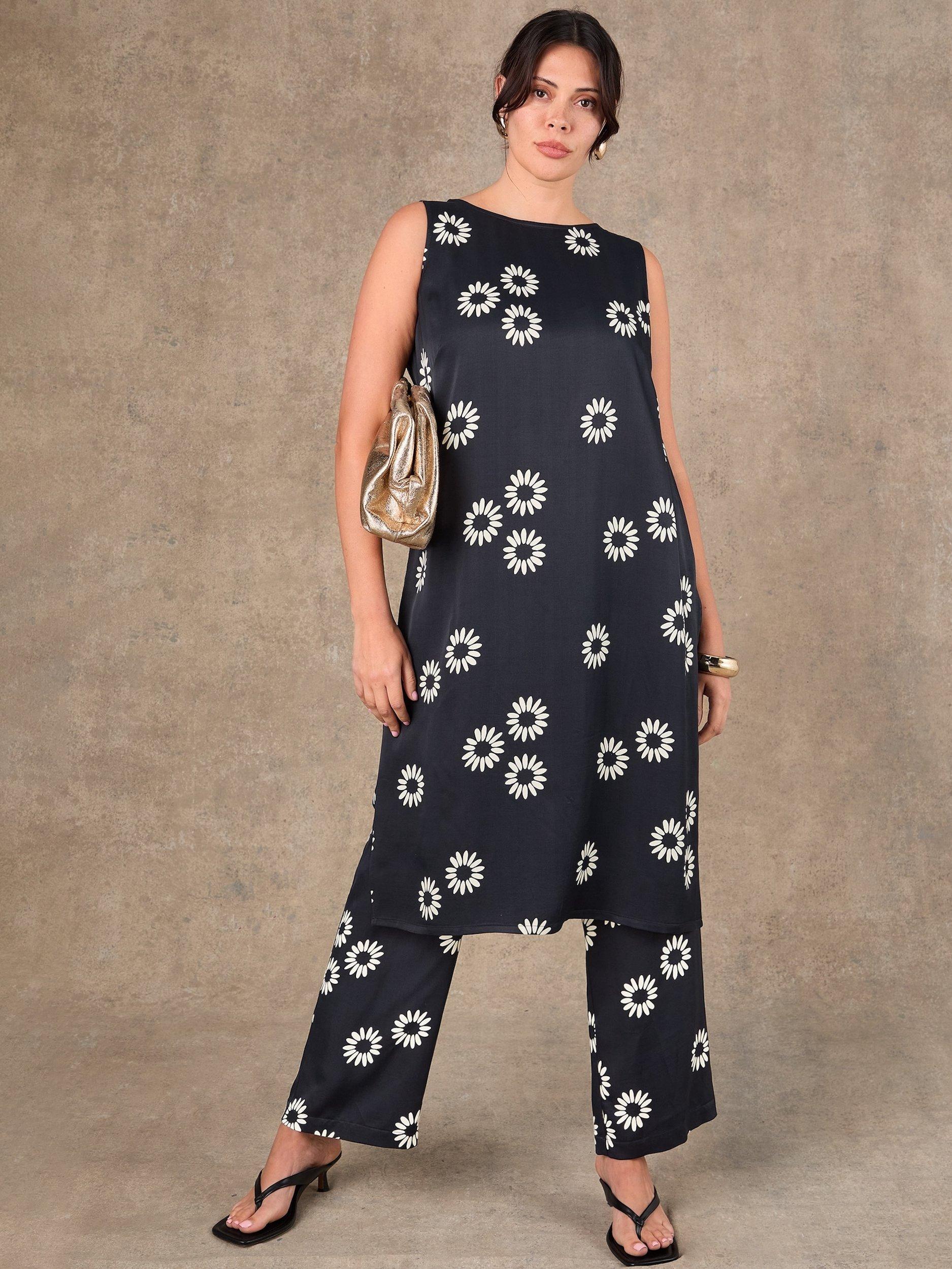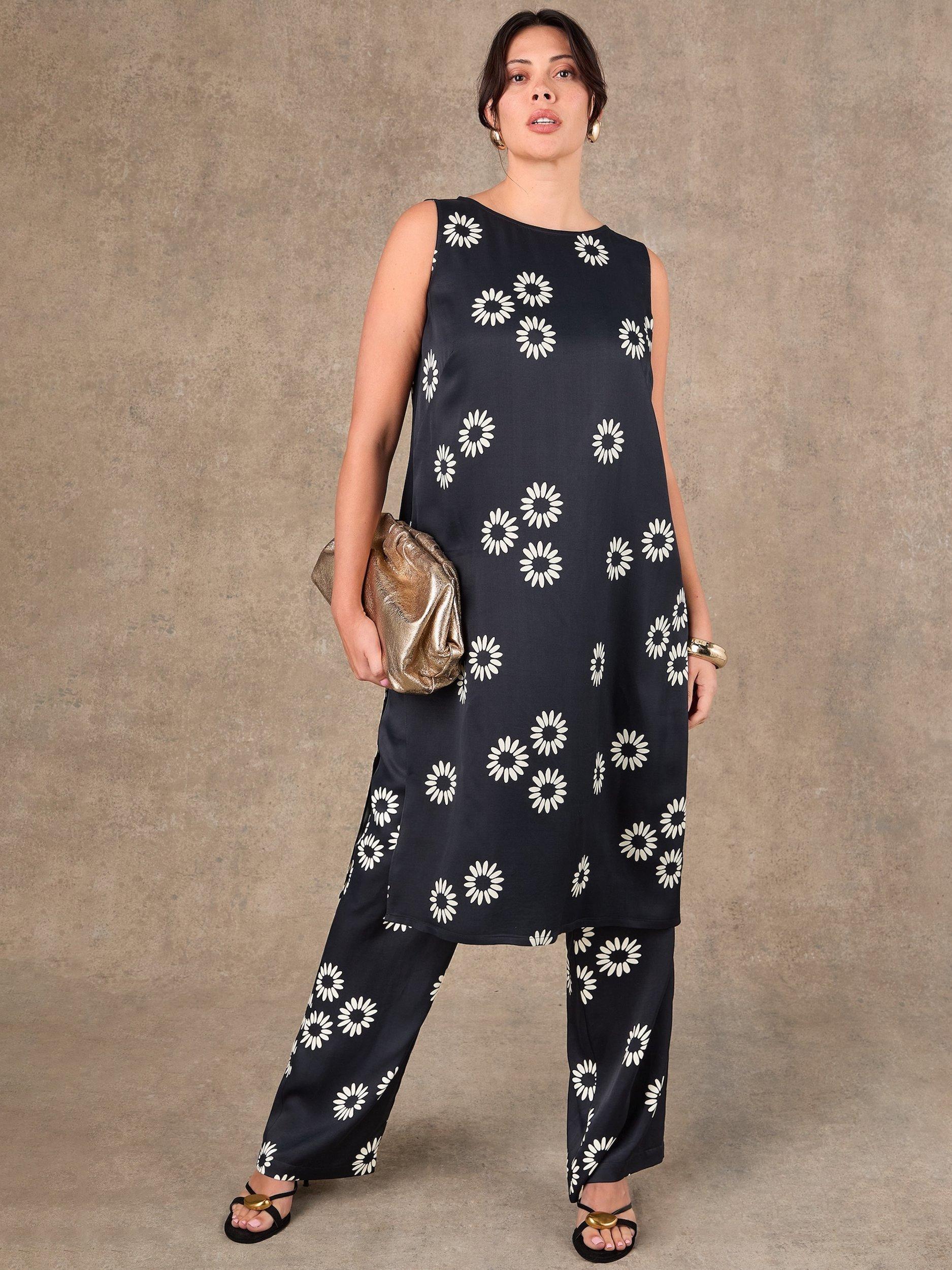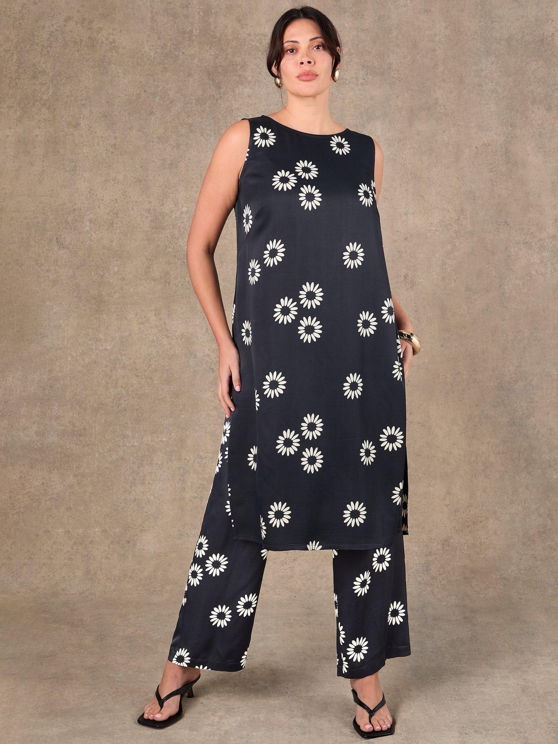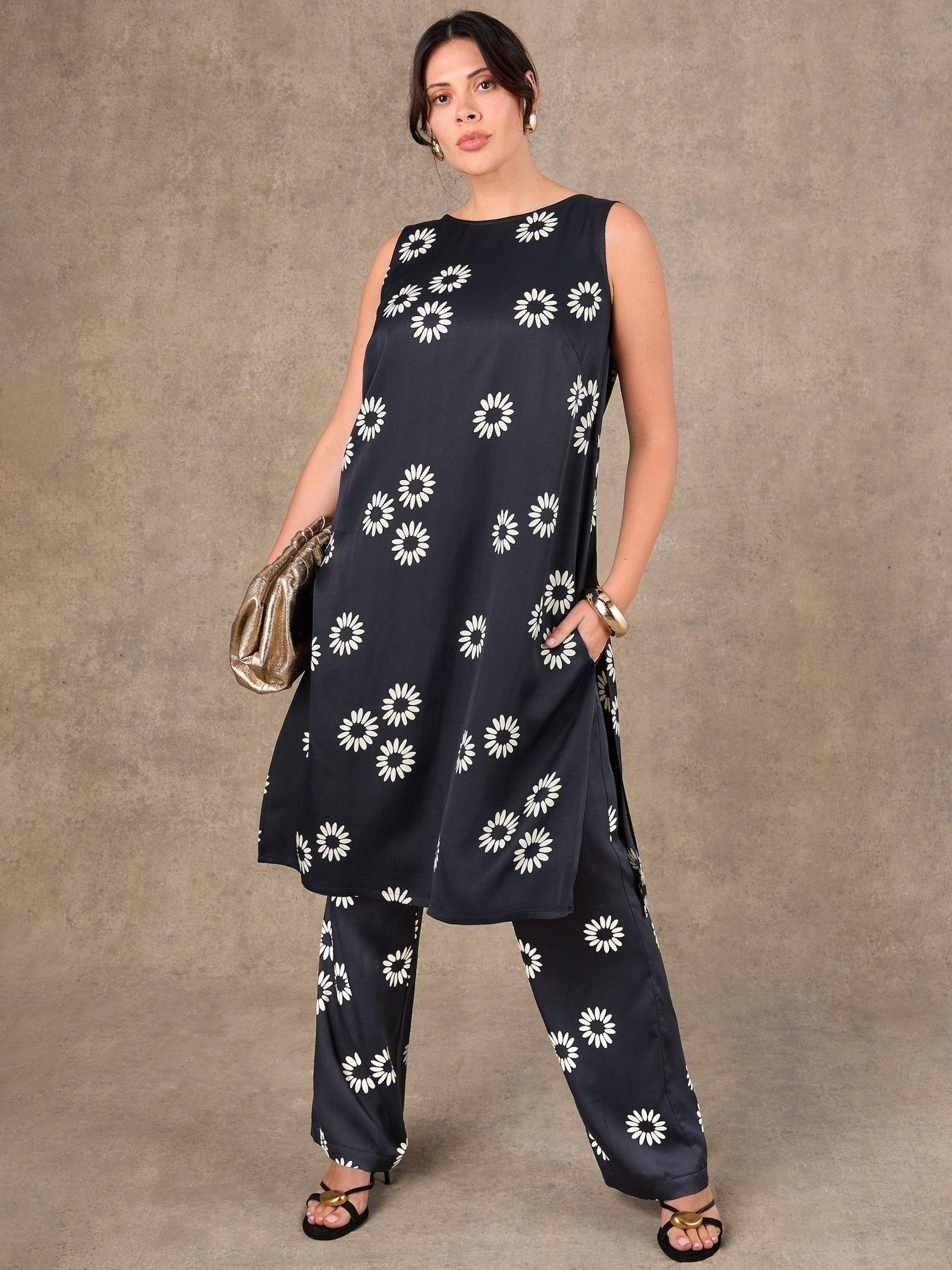 A longer in length, relaxed tunic top by Live Unlimited. Featuring a round neck and a side split, it will brighten your wardrobe with its pretty floral print.