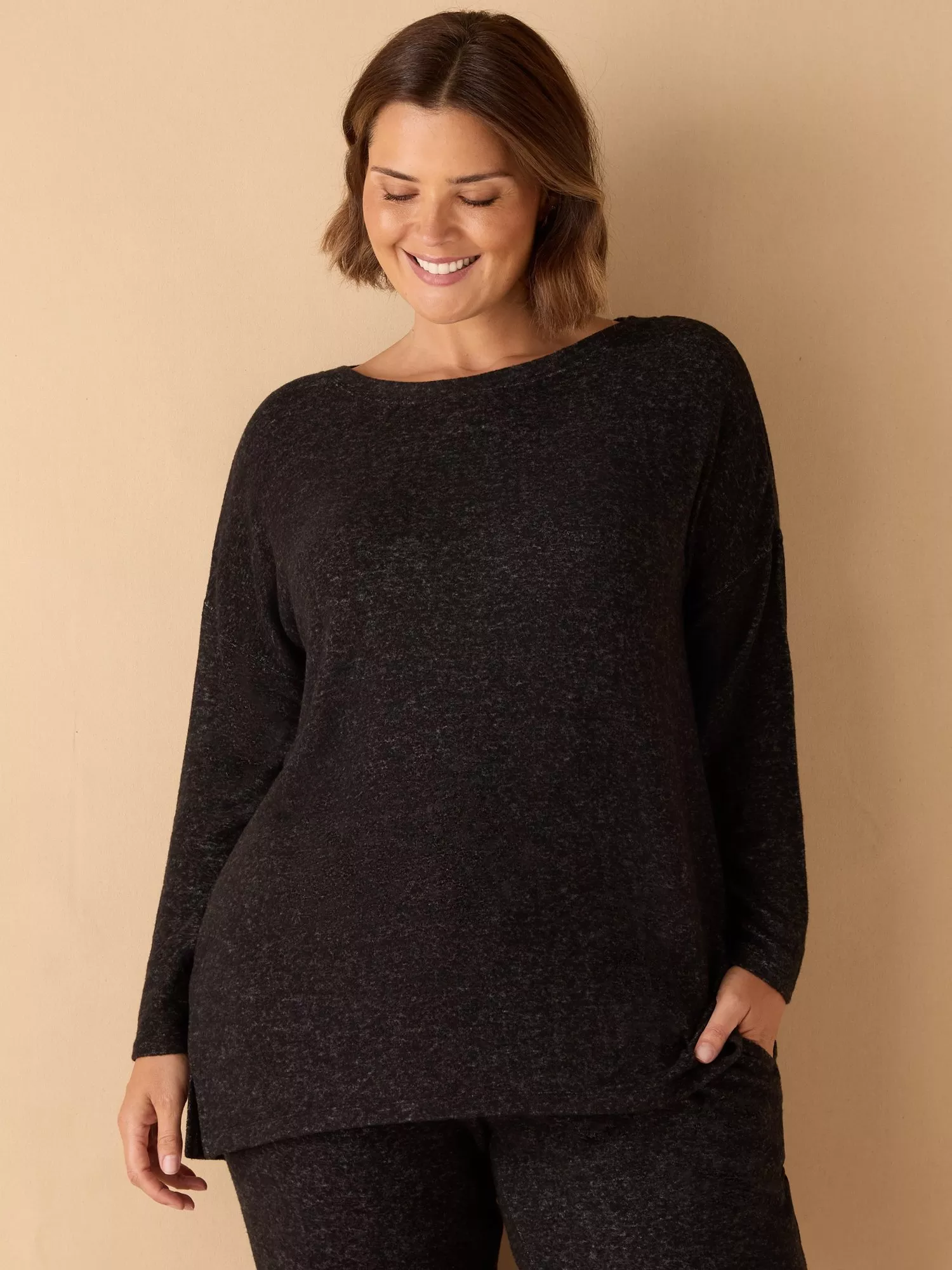 In a classic grey, this Supersoft Round Neck Jumper is the perfect blend of comfort and effortless style. Designed with a flattering crew neckline and relaxed dolman silhouette, it slips on easily for everyday wear. Finished with subtle side splits for added movement, this jumper is ultra-soft and ideal for layering or lounging in cooler weather.