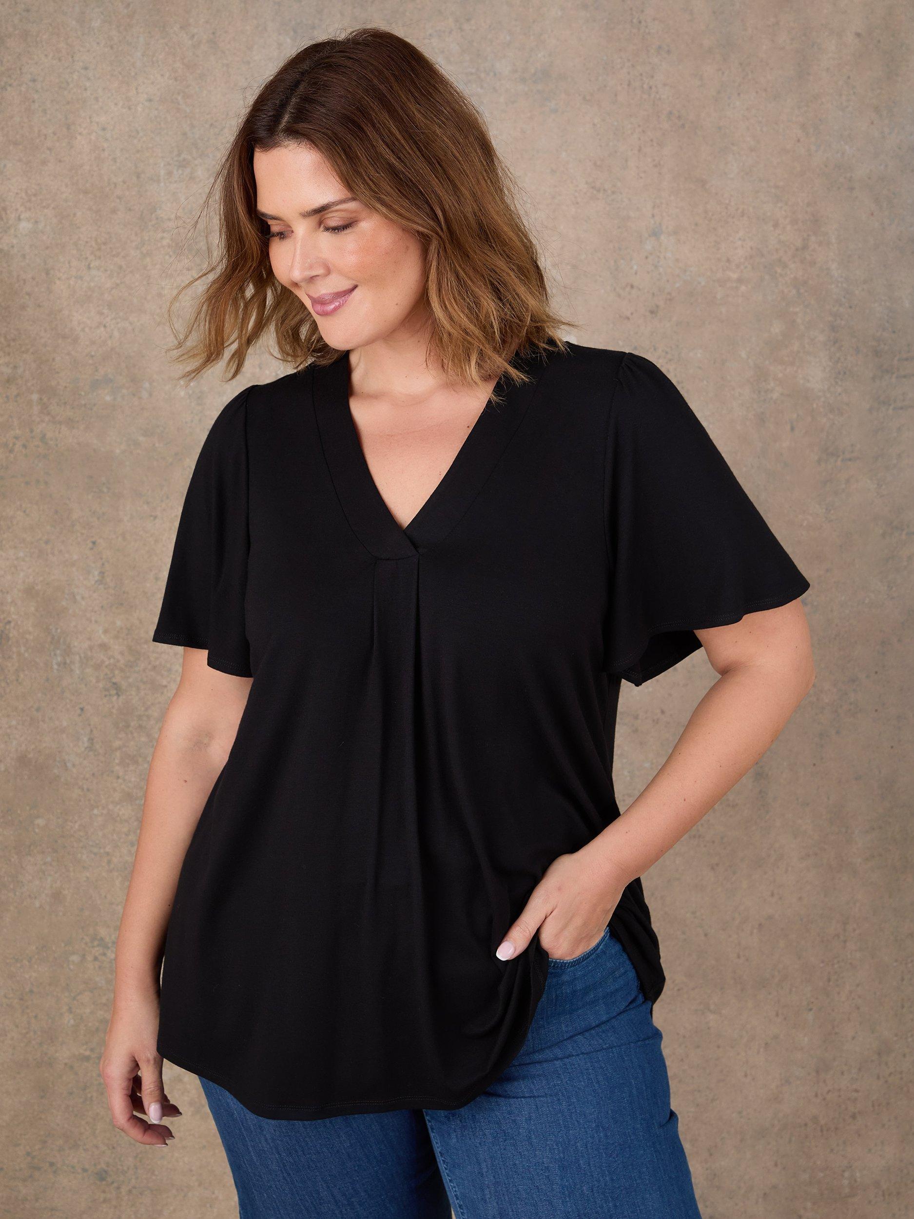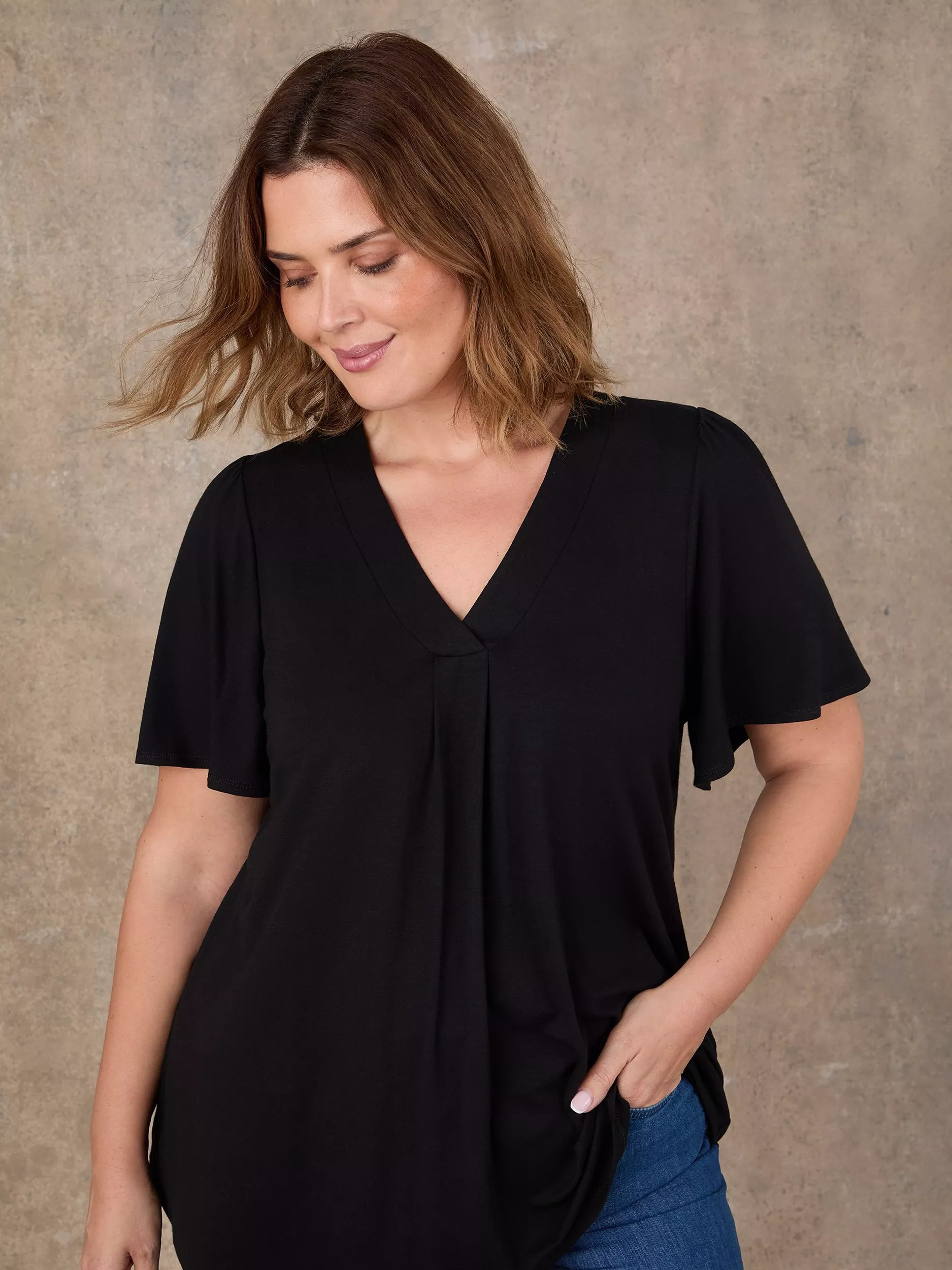Live UnlimitedV-Neck Flutter Sleeve Top, Black