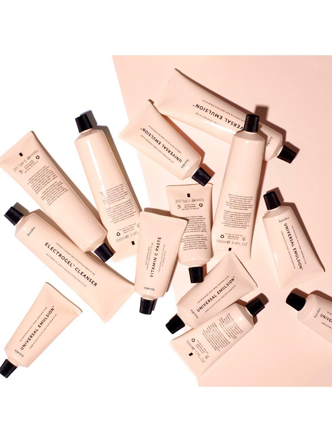 Isolates the skin to shield it from UV and pollution which generate free radicals, keeping them out, rather than dealing with them once in the skin. Provides natural UV protection with no added sunscreens. Delivers molecular water to the skin and boosts its ability to retain it.
