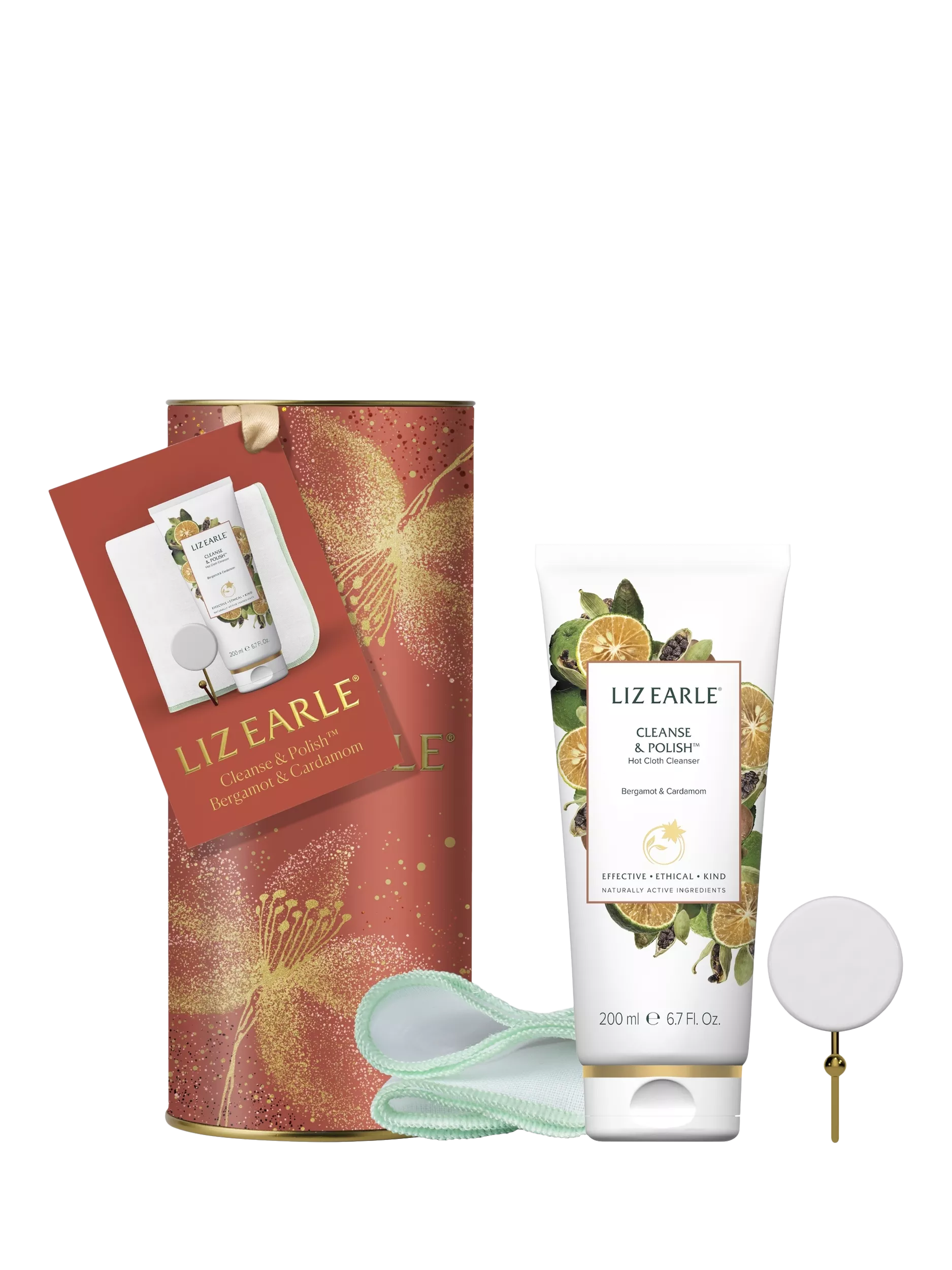 Leave skin looking clear and glowing with Cleanse & Polish™ Bergamot & Cardamom, a special edition fragrance blend. Paired with the gently exfoliating pure cotton cloths, our indulgent cream, enriched with chamomile and rosemary, effortlessly melts away pollutants and makeup. Once you’ve completed your cleansing ritual, leave your cloths to dry on the stylish hook.