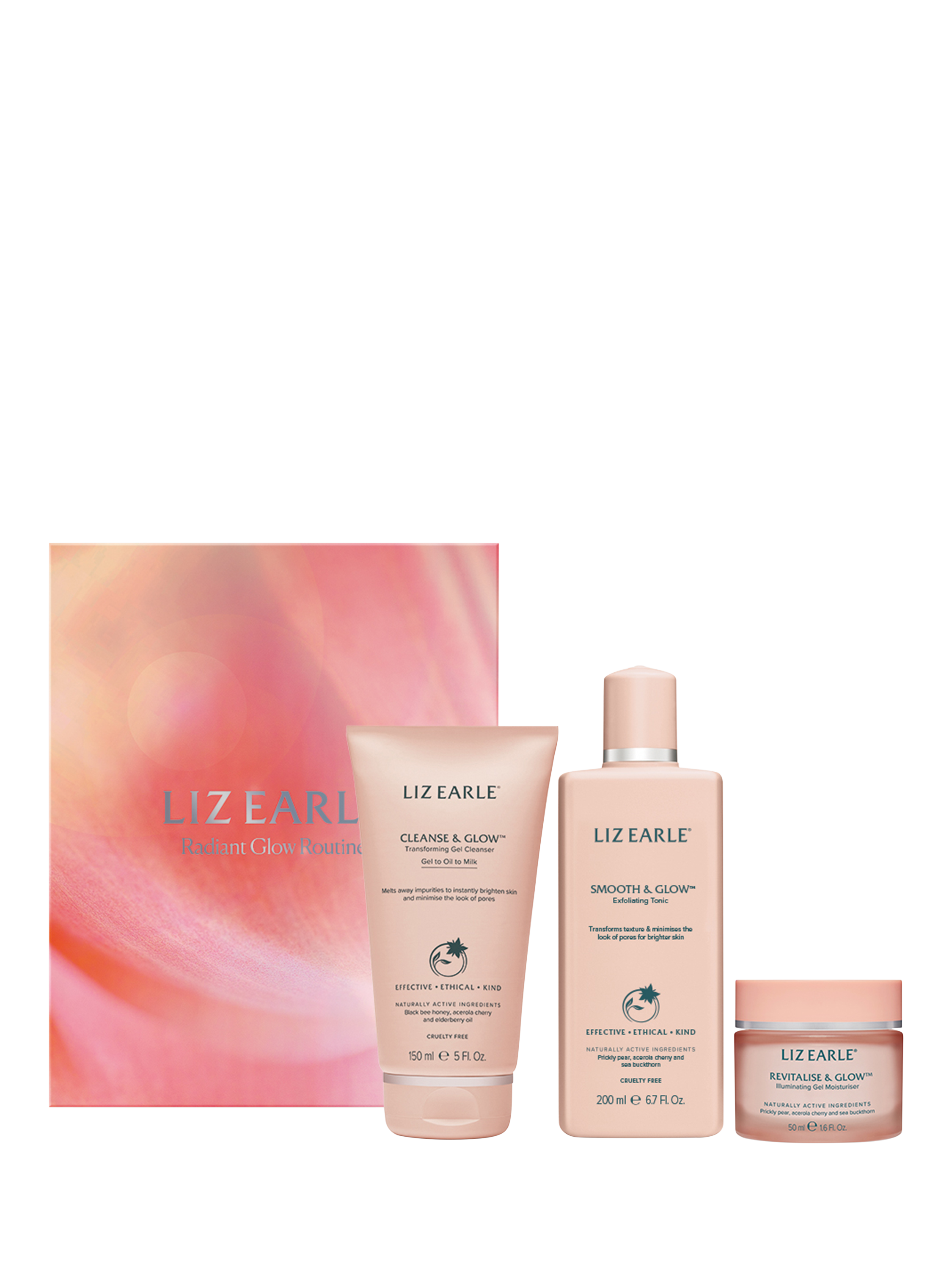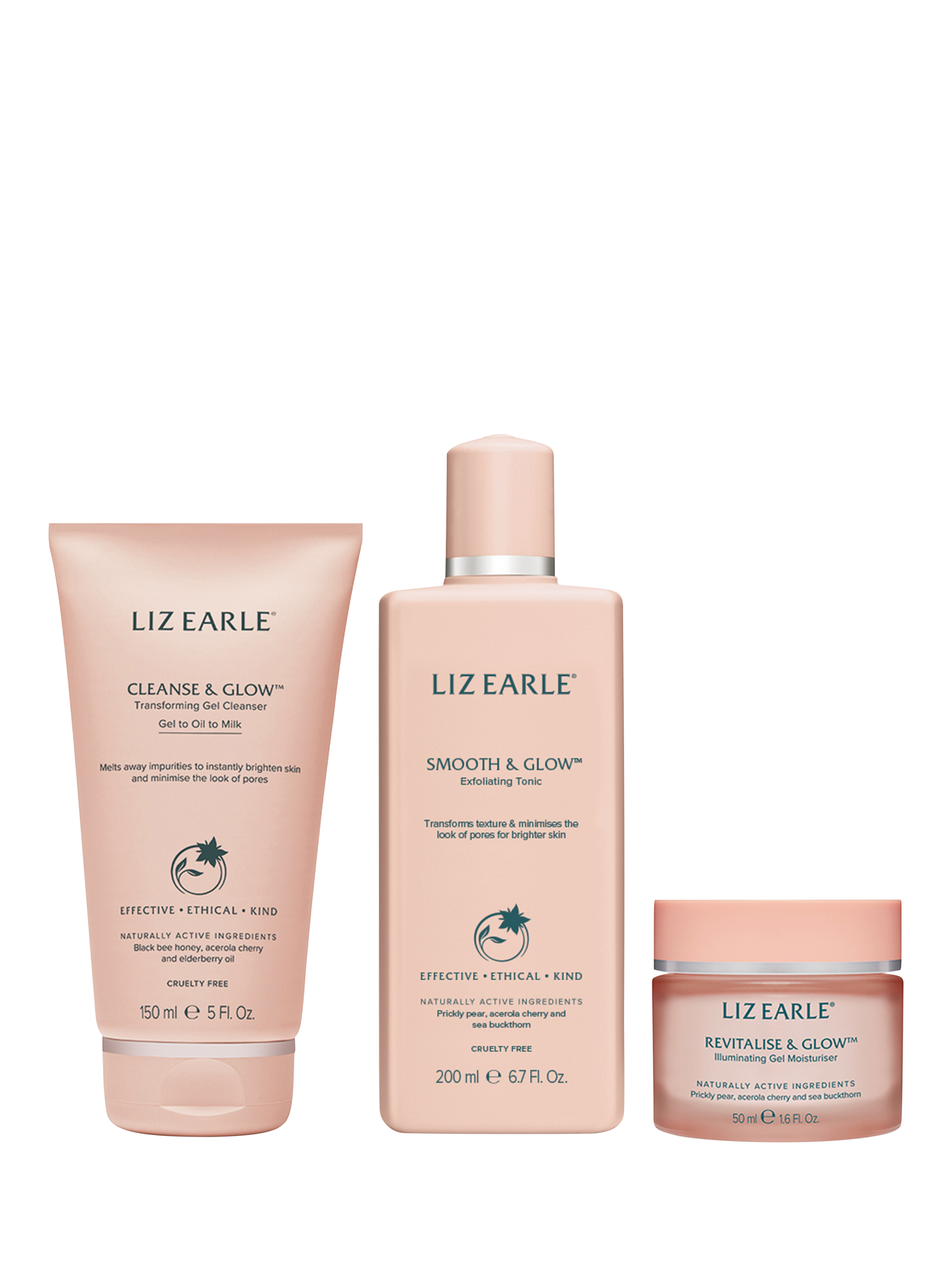 - 45912902 - Cleanse & Glow™ Transforming Gel Cleanser 150mlCaprylic/Capric Triglyceride, Glycerin, Aqua, Safflower Seed Oil Polyglyceryl-4 Esters, Sucrose Stearate, Sucrose Laurate, Sambucus Nigra Seed Oil, Butyrospermum Parkii Oil, Prunus Amygdalus Dulcis Oil, Malpighia Glabra Fruit Juice, Tocopherol, Zymomonas Ferment Extract, Mel, Maltodextrin, Limonene, Linalool, Geraniol, Citral, Citronellol, Parfum45912509 - Smooth & Glow™ Exfoliating Tonic 200mlAqua, Glycerin, Hydrolyzed Opuntia Ficus-Indica Flower Extract, Hippophae Rhamnoides Fruit Juice, Laminaria Digitata Extract, Malpighia Glabra Fruit Juice, Phenoxyethanol, Polysorbate 20, Saccharide Isomerate, Sodium Gluconate, Parfum, Benzoic Acid, Dehydroacetic Acid, Limonene, Sodium Hydroxide, Linalool, Ethylhexylglycerin, Geraniol, Sodium Benzoate, Citral, Potassium Sorbate, Citronellol, Citric Acid, Sodium Citrate45912508 - Revitalise & Glow™ Illuminating Gel Moisturiser 50mlAqua, Propanediol, Coco-Caprylate, Glycerin, Cetearyl Alcohol, Borago Officinalis Seed Oil, Persea Gratissima Oil, Glyceryl Stearate Citrate, Helianthus Annuus Seed Oil, Hydrolyzed Opuntia Ficus-Indica Flower Extract, Betula Pendula Sap, Malpighia Glabra Fruit Juice, Alaria Esculenta Extract, Hippophae Rhamnoides Fruit Juice, Daucus Carota Sativa Seed Oil, Daucus Carota Sativa Root Extract, Parfum, Phenoxyethanol, Sodium Polyacrylate, Cetearyl Glucoside, Caprylyl Glycol, Saccharide Isomerate, Sodium Gluconate, Limonene, Linalool, Xanthan Gum, Caprylic/Capric Triglyceride, Geraniol, Maltodextrin, Tocopherol, Citric Acid, Citral, Glycine Soja Oil, Ethylhexylglycerin, Citronellol, Sodium Citrate, Sodium Hydroxide, Sodium Benzoate, Potassium Sorbate, Ascorbyl Palmitate, Ci 40800