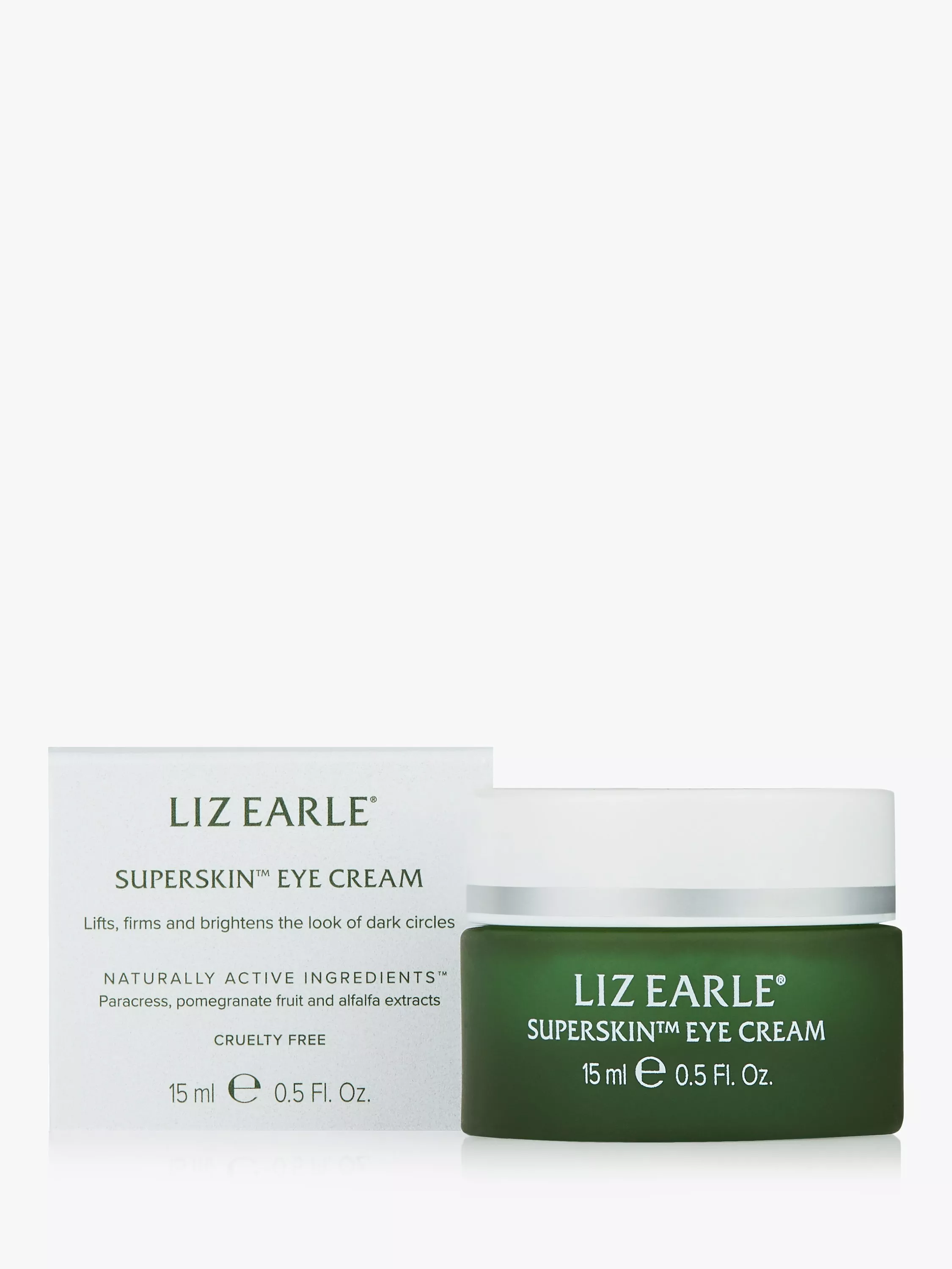 This powerful botanical blend also visibly reduces the appearance of fine lines, wrinkles and puffiness. With a silky smooth texture that absorbs fast to instantly hydrate, Superskin™ Eye Cream is enriched with plant extracts expertly selected for their efficacy, including firming paracress flower extract, antioxidant pomegranate fruit and green tea to brighten, plus alfalfa to ease under-eye puffiness. It also contains a signature trio of nourishing plant oils – cranberry, rosehip and British borage seed – to provide specialist care for the delicate eye area.