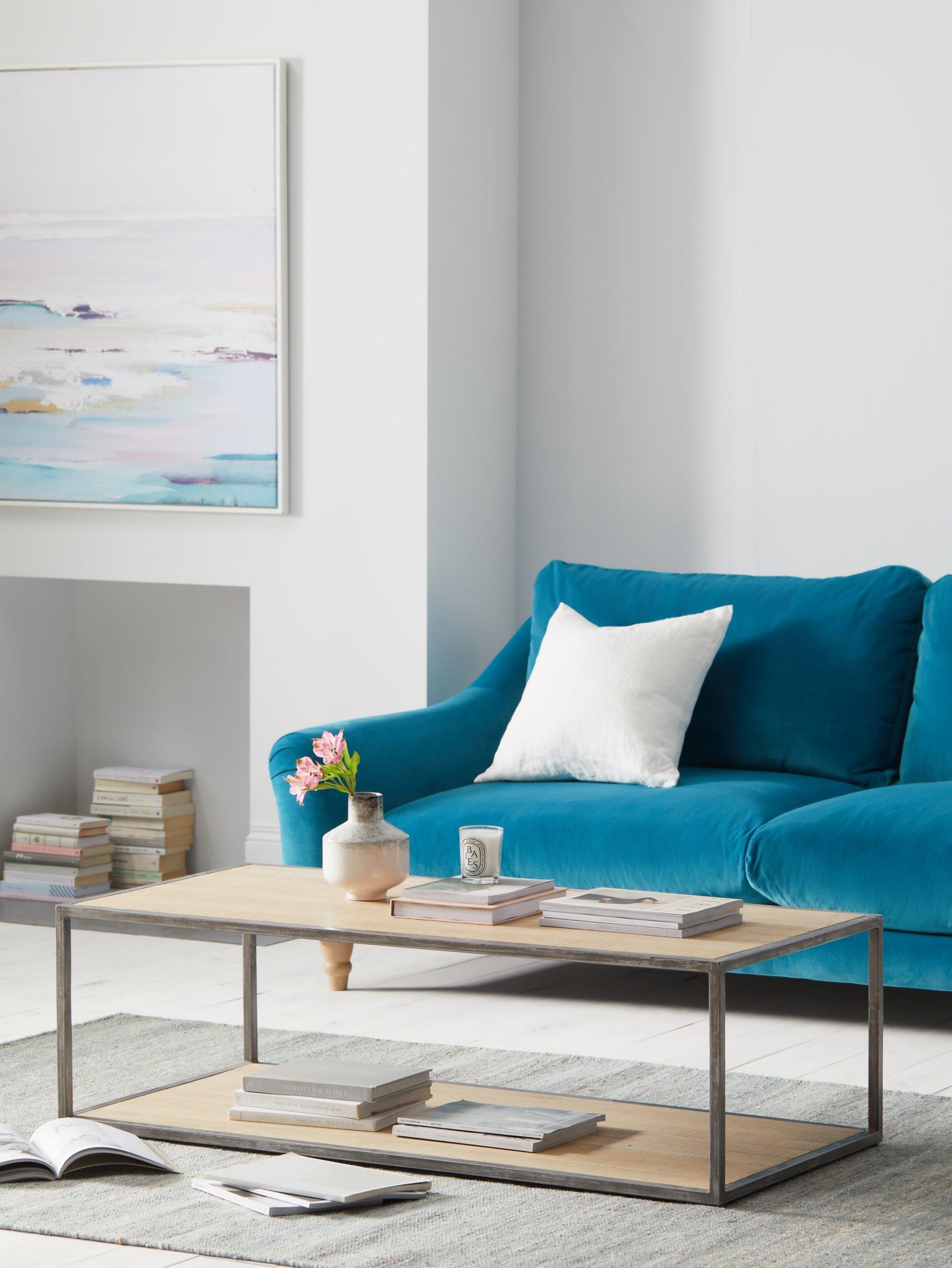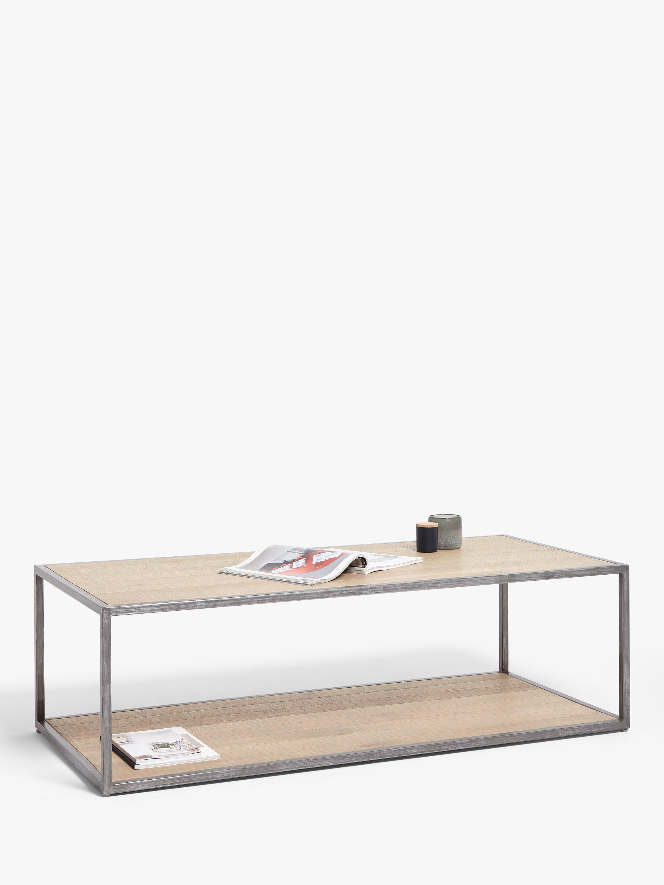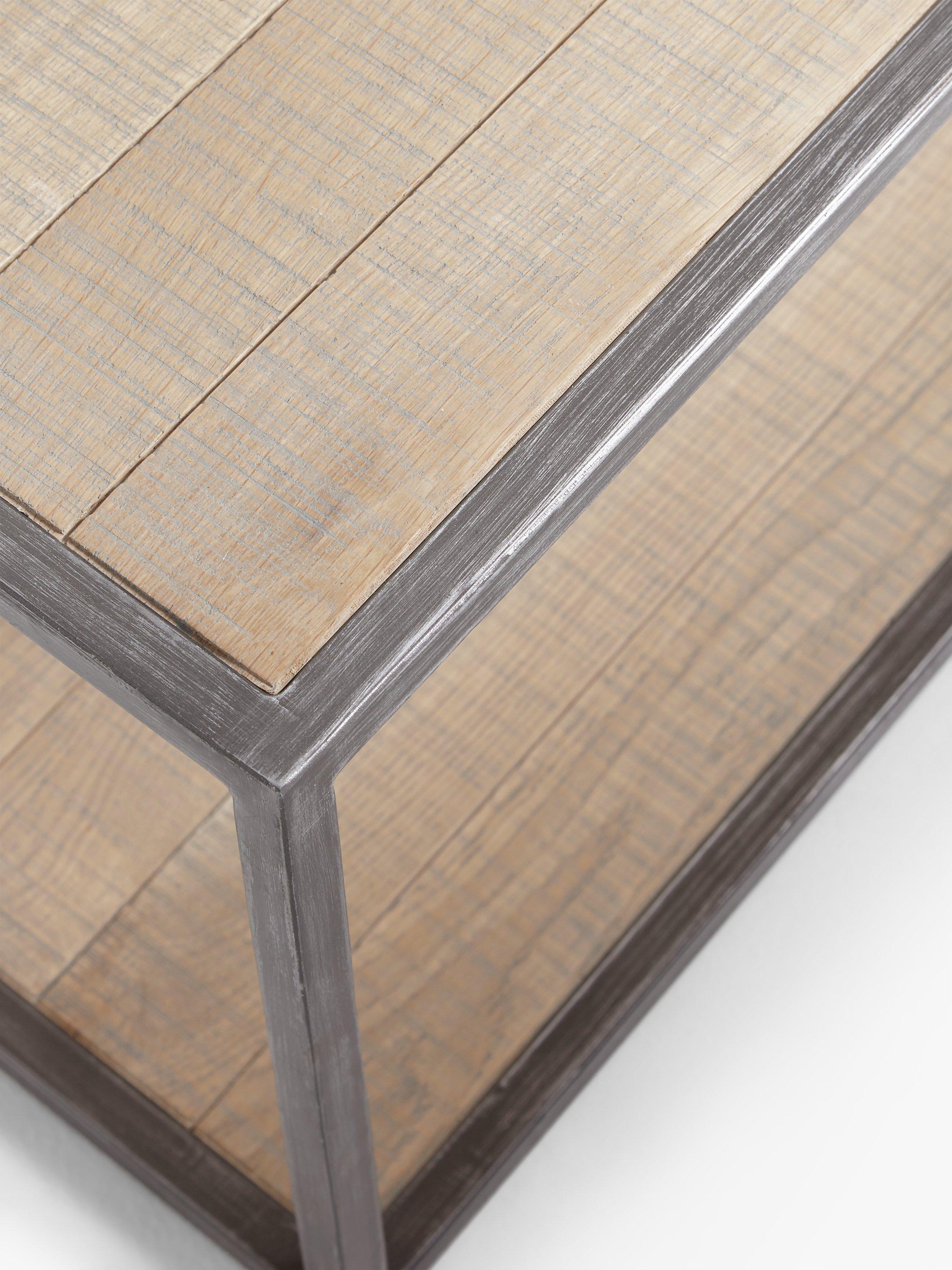 Designed by Loaf's in-house design team exclusively for John Lewis & Partners, the robust and rustic-inspired Acorn coffee table is a functional centrepiece for your living room. Made from solid oak in a grey wash and incorporating two shelf storage options, it has a tactile band sawn finish that highlights the natural, unique grain of the wood. This vintage style makes it ideal for country-inspired settings and the hand-welded, brushed metal frame creates an airy, open profile.
