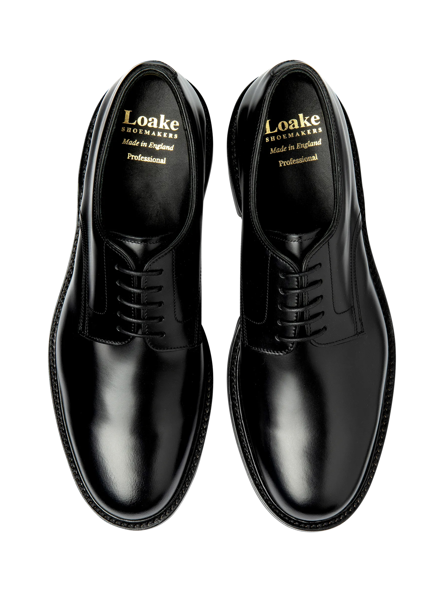 Loake's Barbican style is a polished leather Derby shoe with a dependable Goodyear Welted rubber sole. It is also made in England.