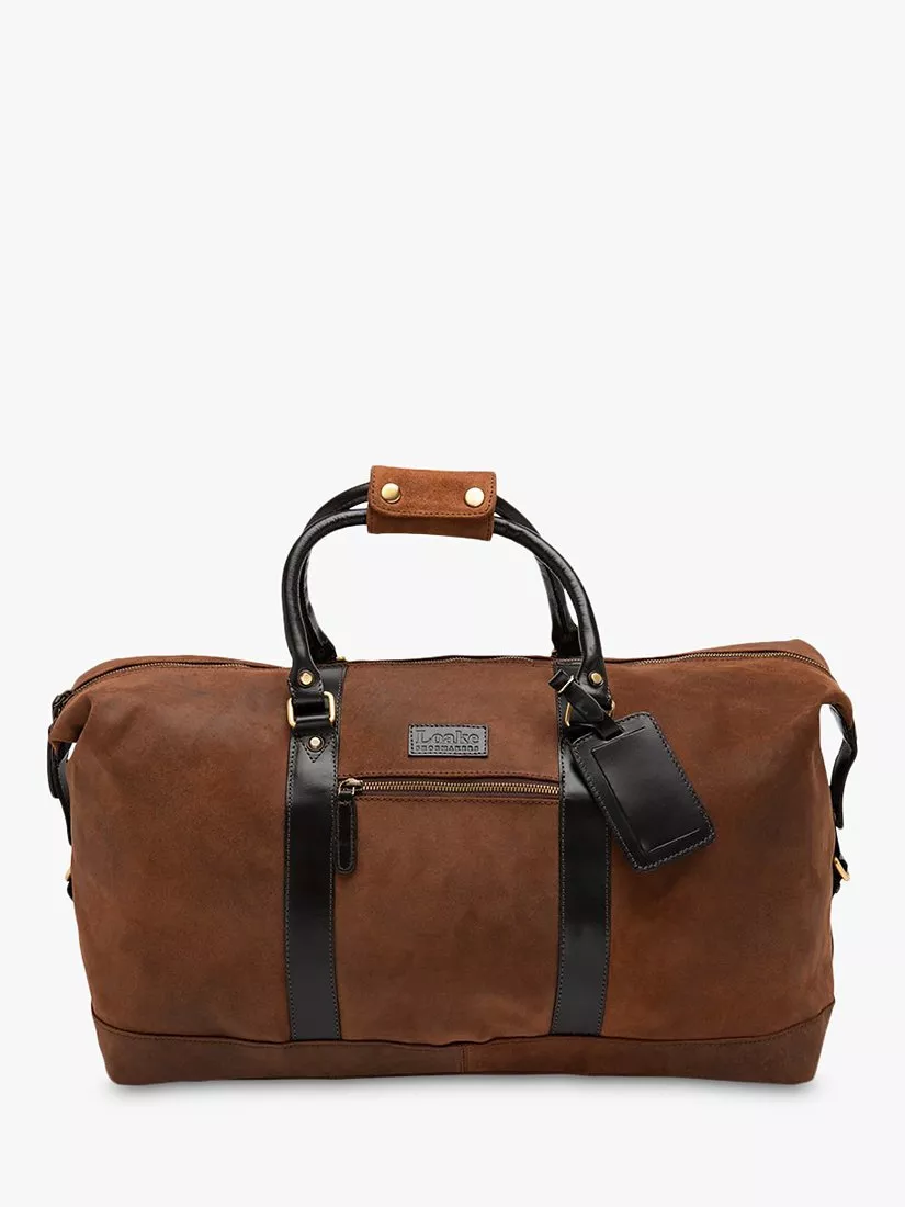 LoakeCornwall Suede and Leather Weekend Bag, Brown