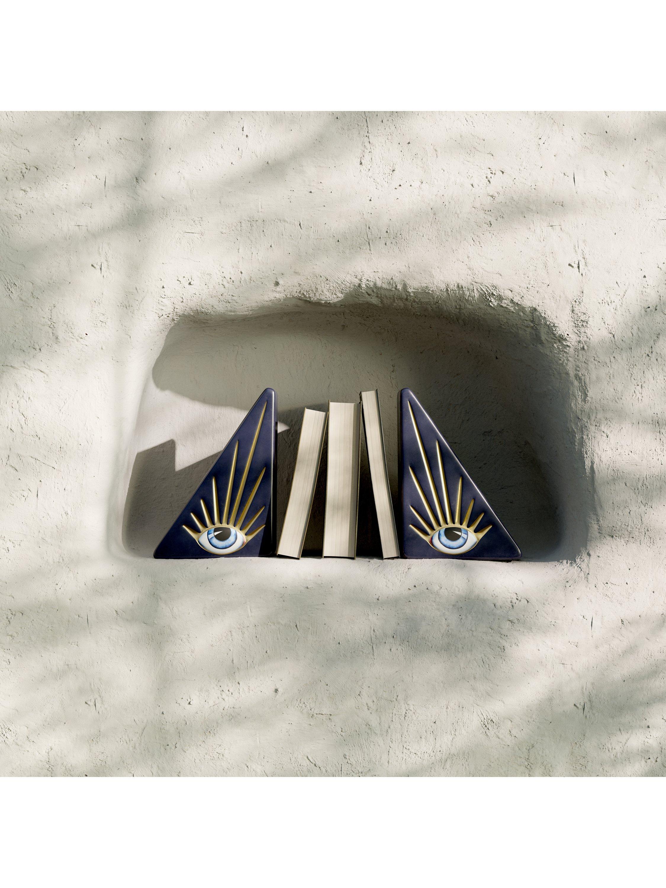 L'OBJET + Lito is a collection featuring an eye motif mixed with the finest materials. A surrealistic 'talisman' of good luck and a traditional symbol of protection, the eye serves as a constant reminder to be aware and to seek beauty in the everyday. This whimsical and luxurious design for a shelf or library is handcrafted from porcelain.