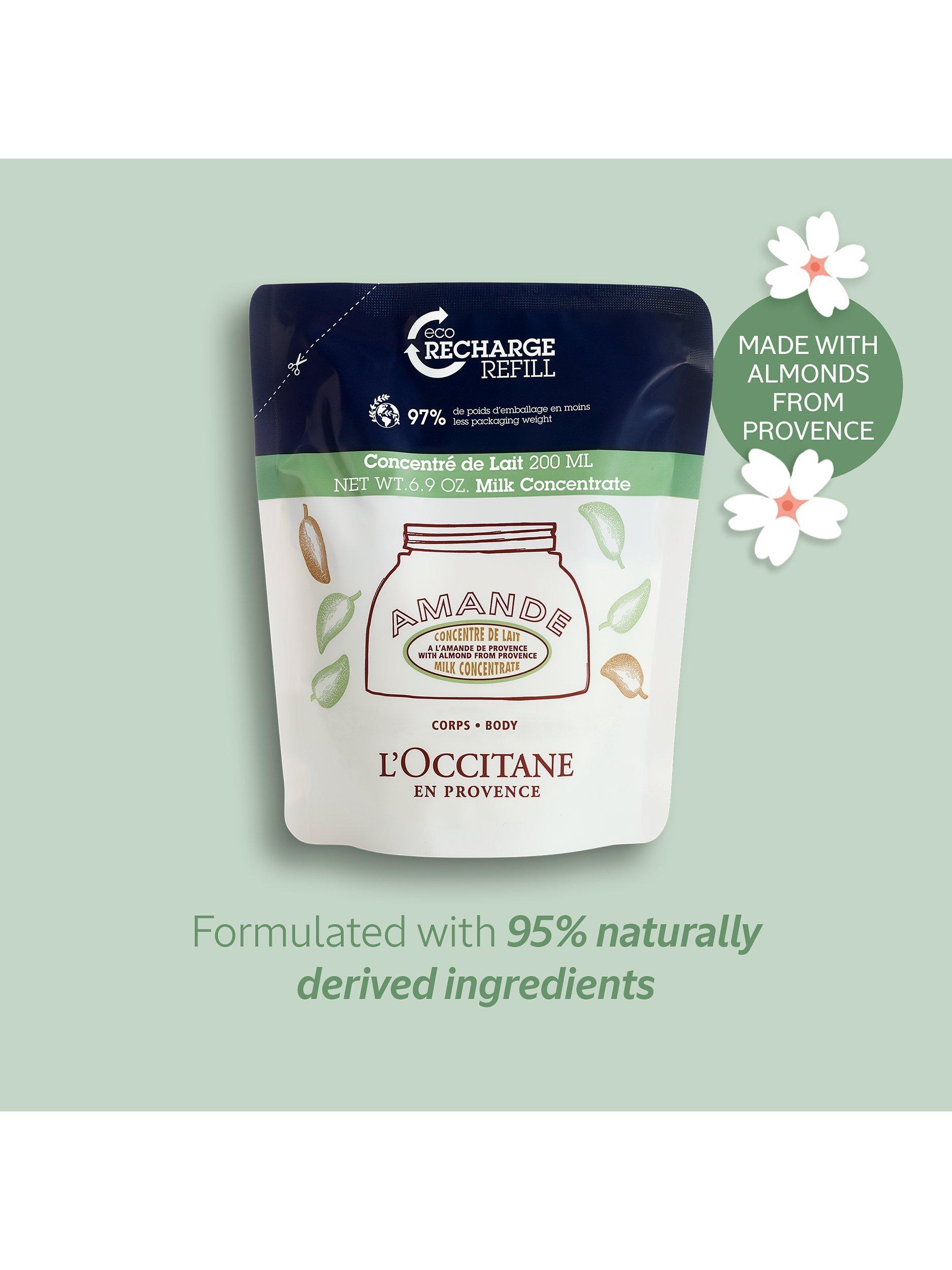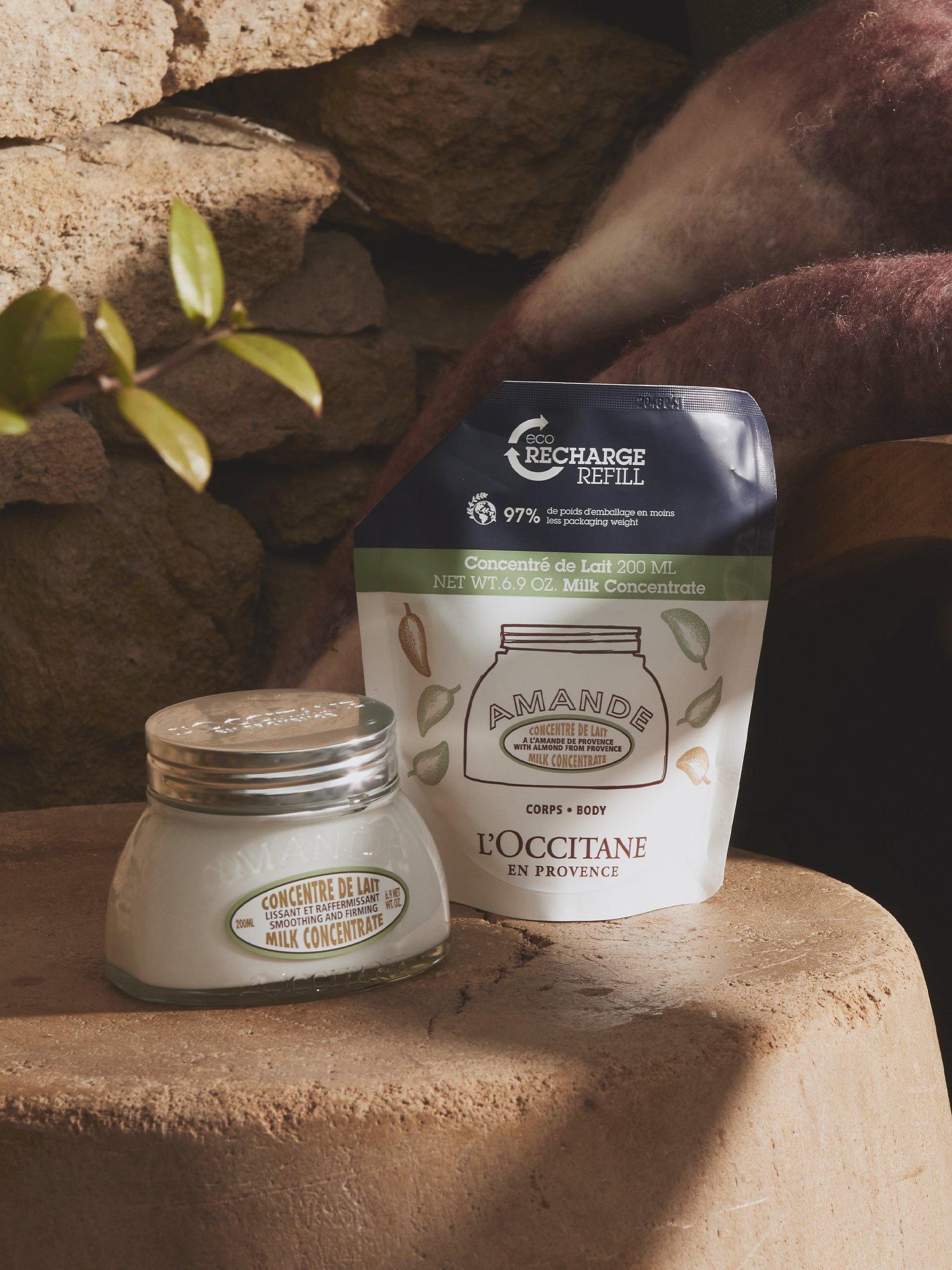 Enriched with almond milk and sweet almond oil from Provence, and now formulated with 95% naturally derived ingredients, the Almond Milk Concentrate delivers long-lasting hydration, improves suppleness, and visibly smoothes the skin.