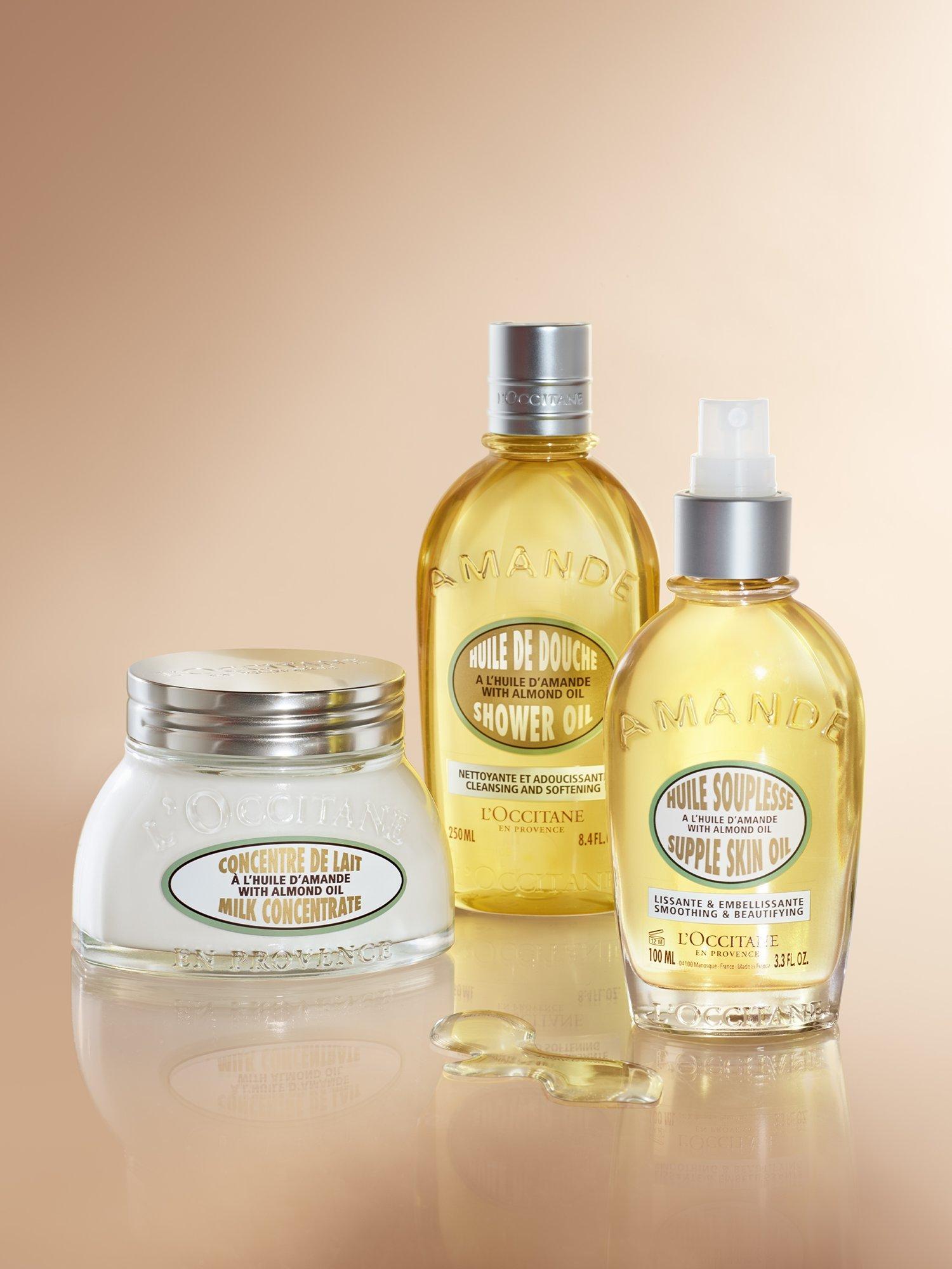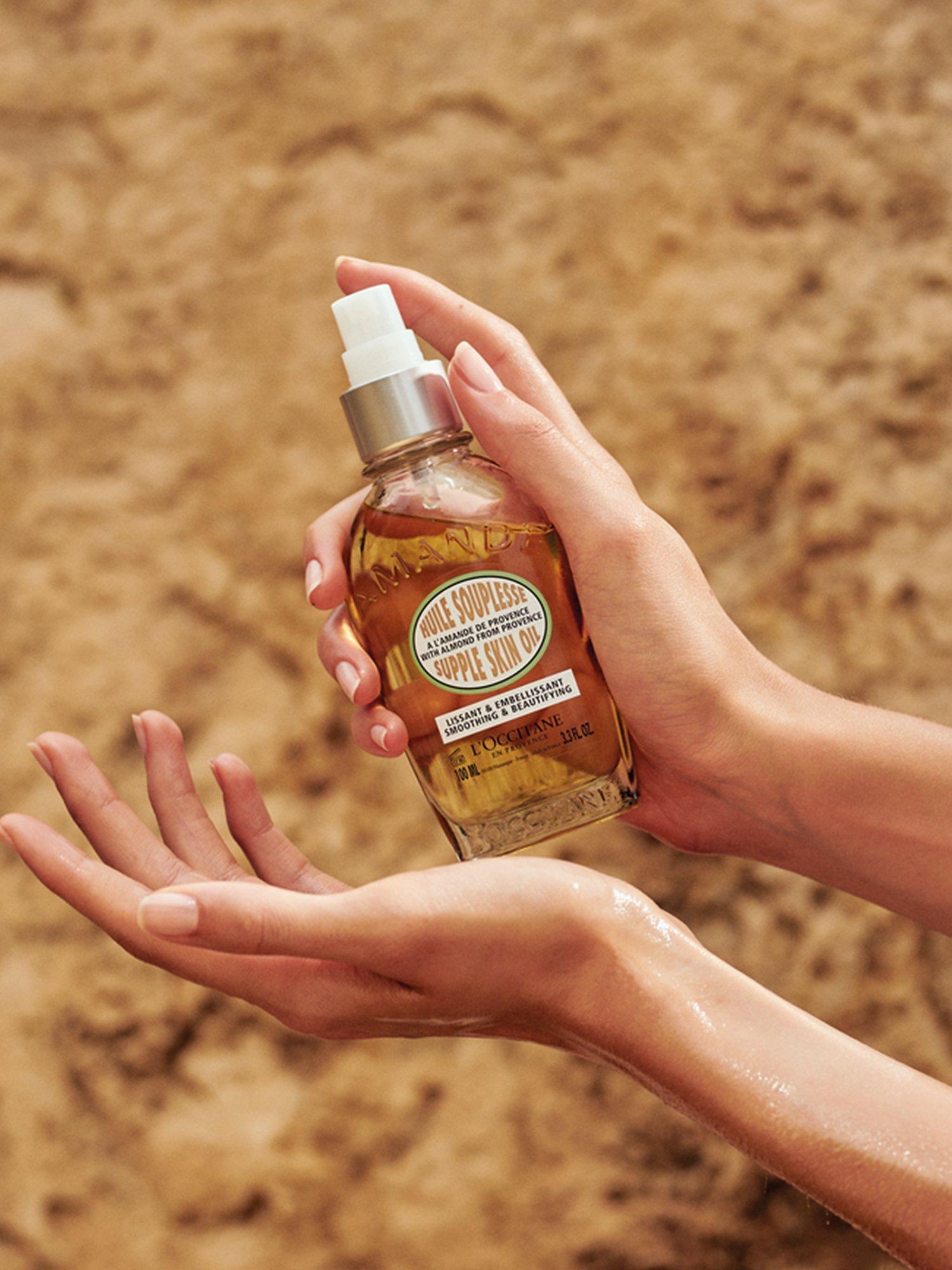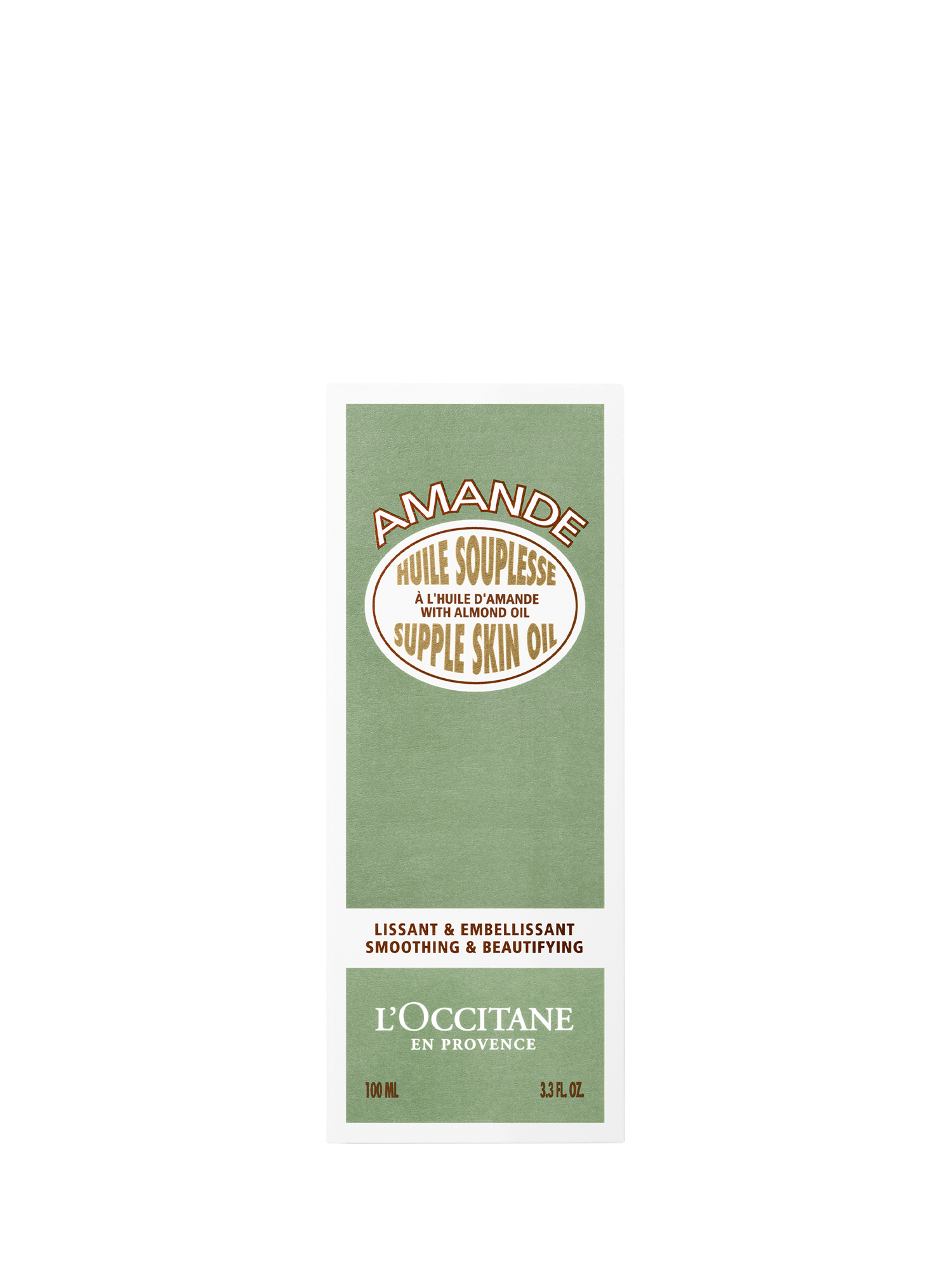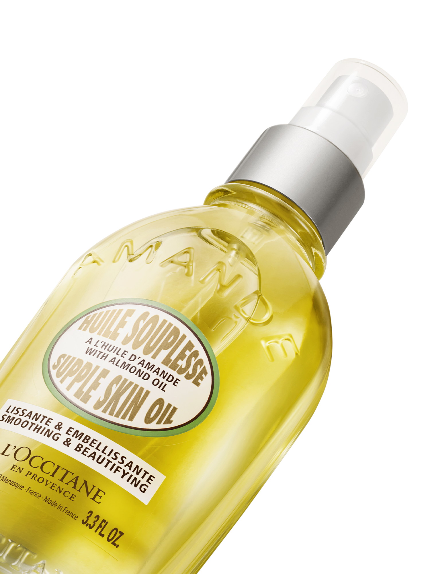 Our Almond Supple Skin Oil is made with over 50% pure almond oil from Provence and formulated with 97% naturally derived ingredients. Lightweight in texture, this delicious oil helps fight dryness, improve skins elasticity and reduce stretch mark appearance.
