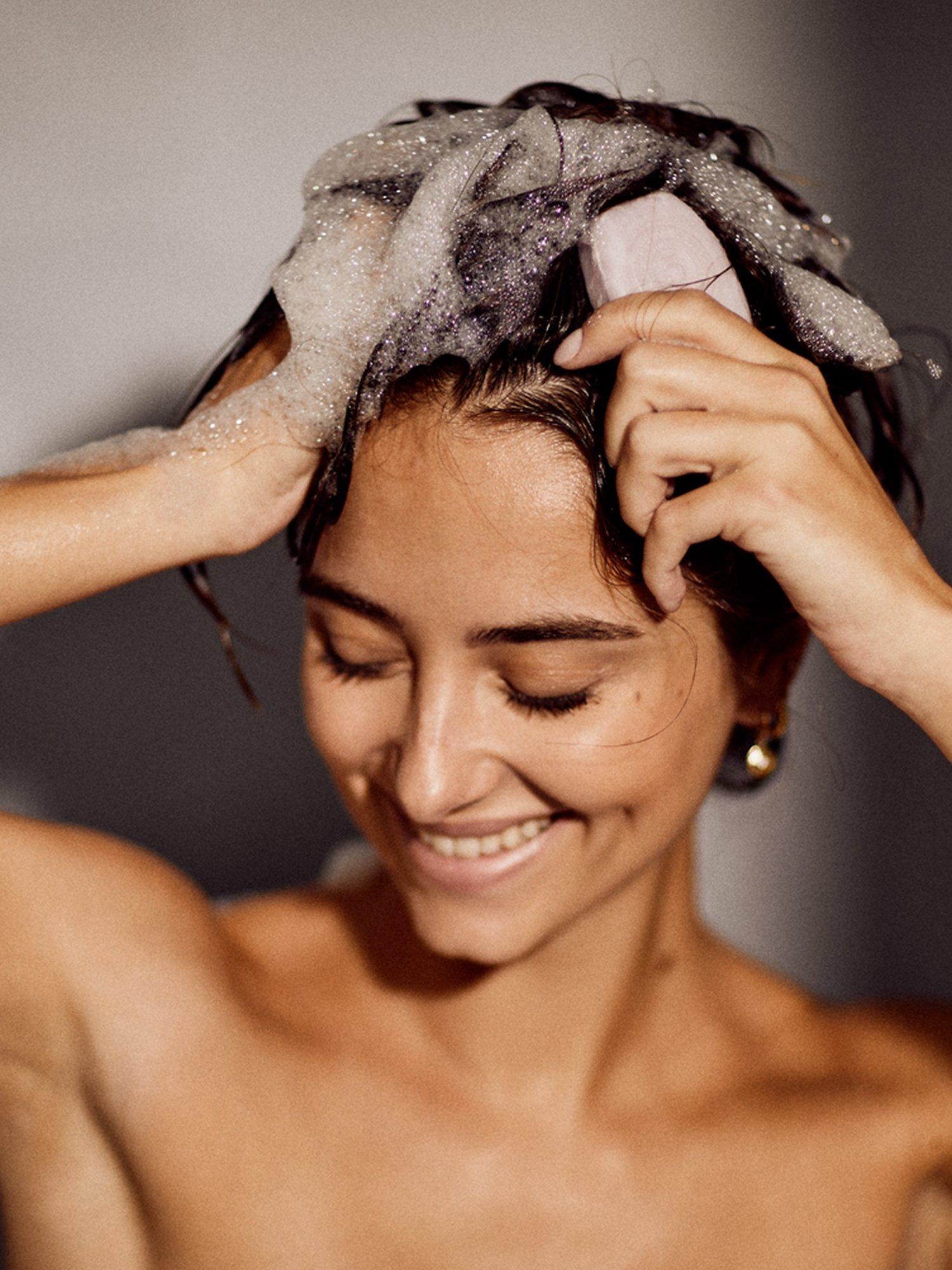 A solid, sustainable, gentle shampoo for all hair types that promotes healthy hair and scalp.
