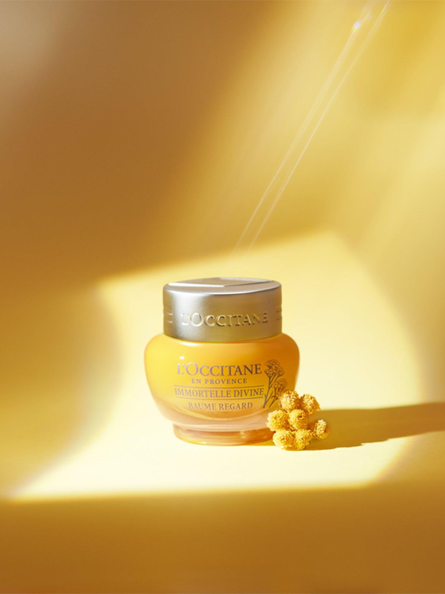 Featuring new Super Immortelle Extract - a 100% natural-origin alternative to Retinol* that's gentle on the skin** - its rich, melt-in texture, the Divine Eye Balm helps to correct main signs of skin ageing and provides supreme comfort for the delicate skin around the eyes. Enriched with Immortelle and Shea Butter, it diminishes puffiness and dark circles, smoothes skin, and helps to improve tone, firmness and radiance.