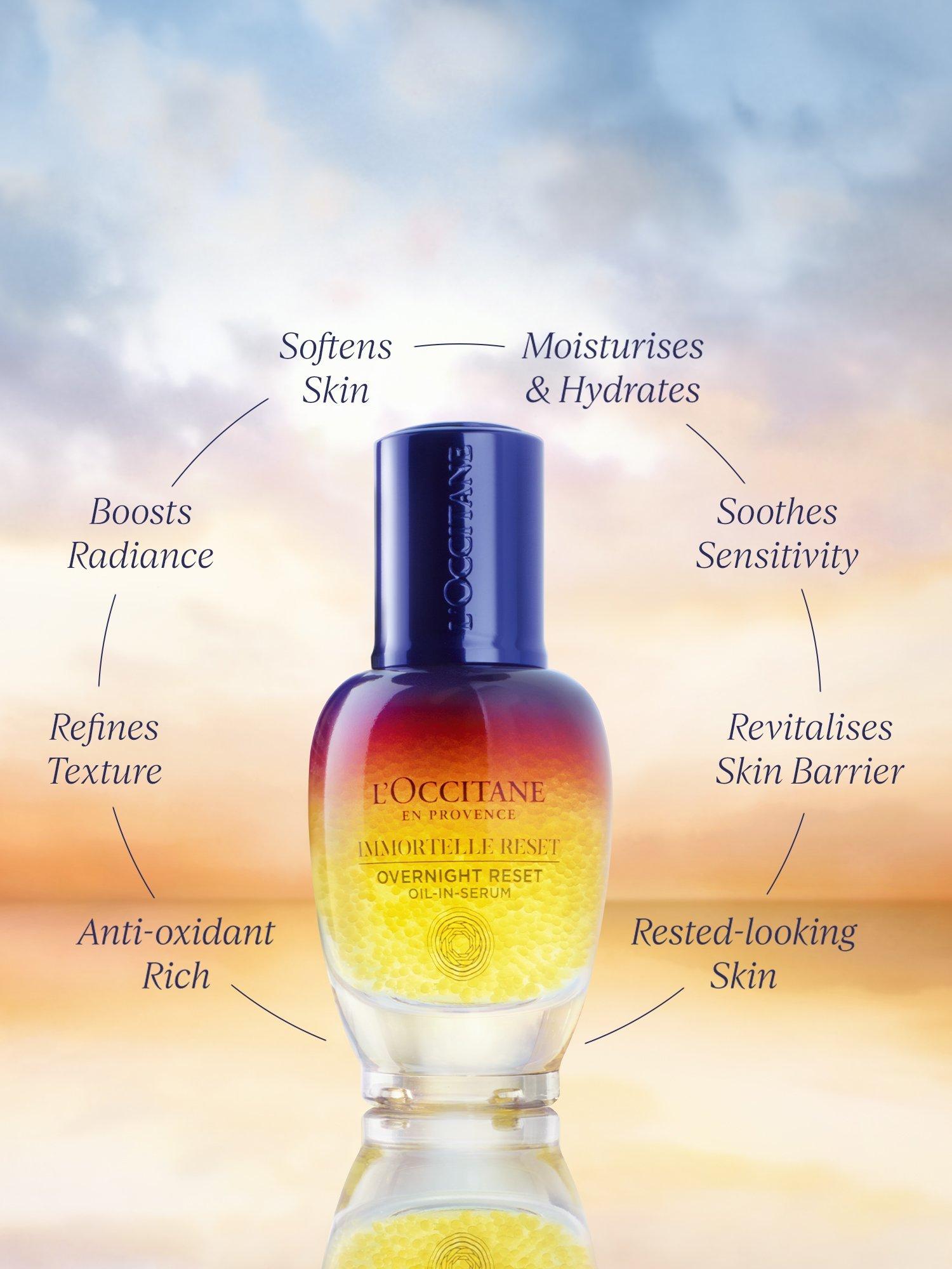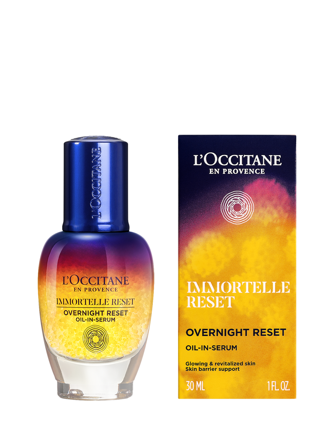 Immortelle Overnight Reset Serum boosts your skin radiance for a fresher look. This extraordinary night serum is suitable for sensitive skin and is clinically proven to have an instant and long-term effect on glow. The serum works in combination with all L’OCCITANE face serums and moisturisers.