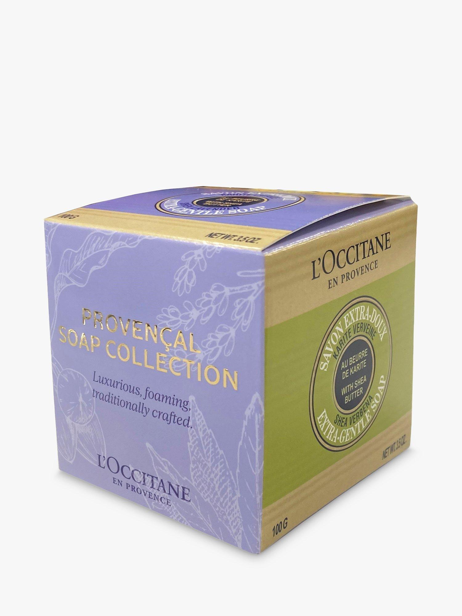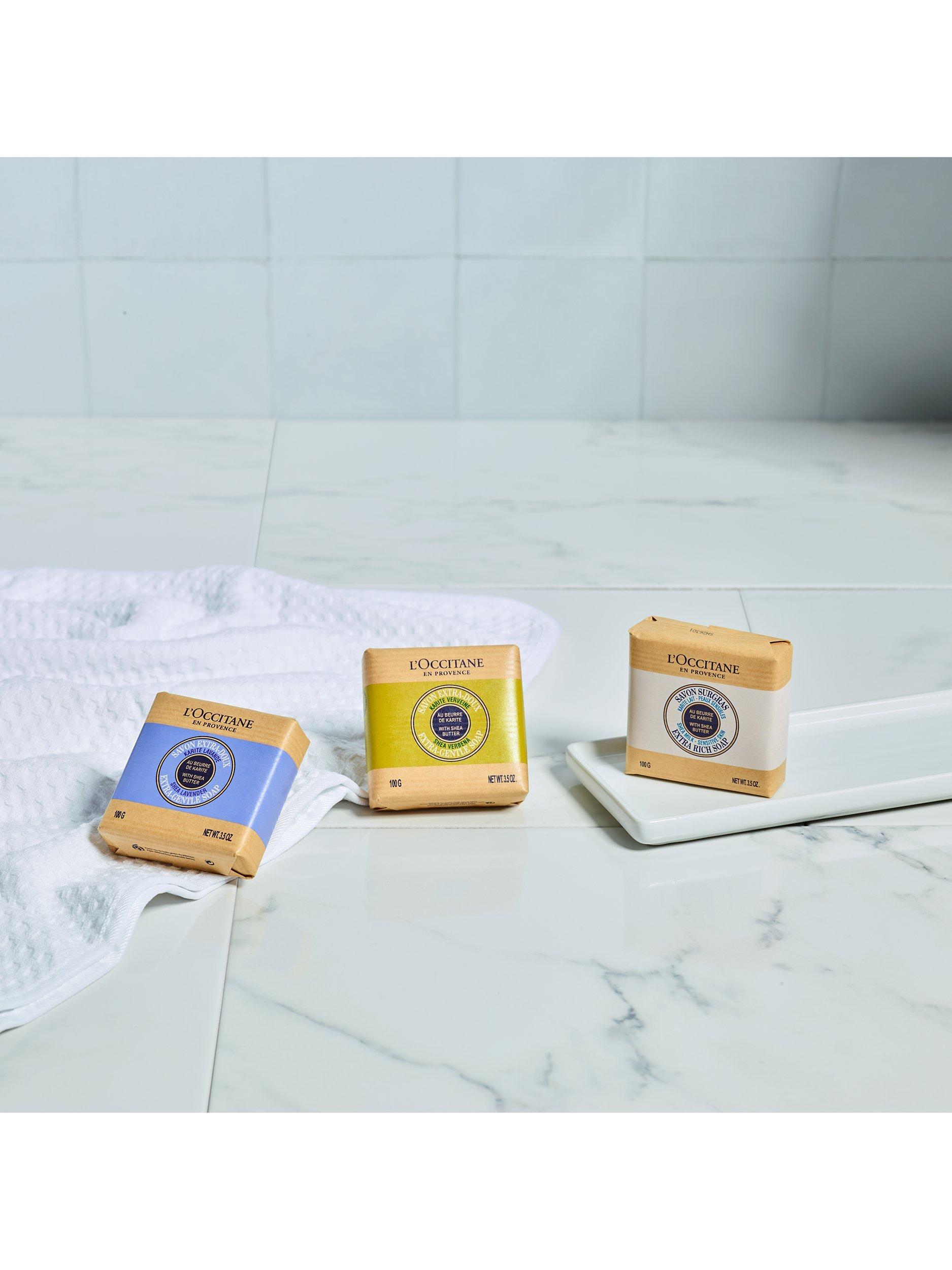 Formulated with a 100% vegetable base, this trio features L’OCCITANE's classic shea butter solid soaps in its iconic scents - milk, verbena and lavender.
