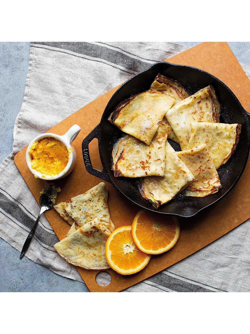 This cast iron frying pan or skillet can be used on the hob or in the oven and has pouring lips on either side. You can even use it for baking bread.