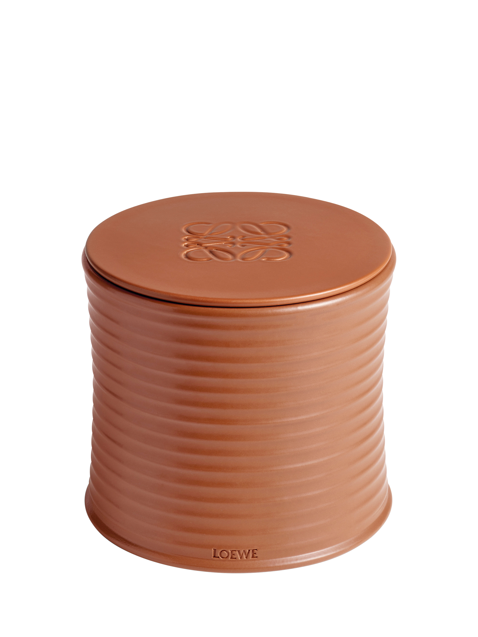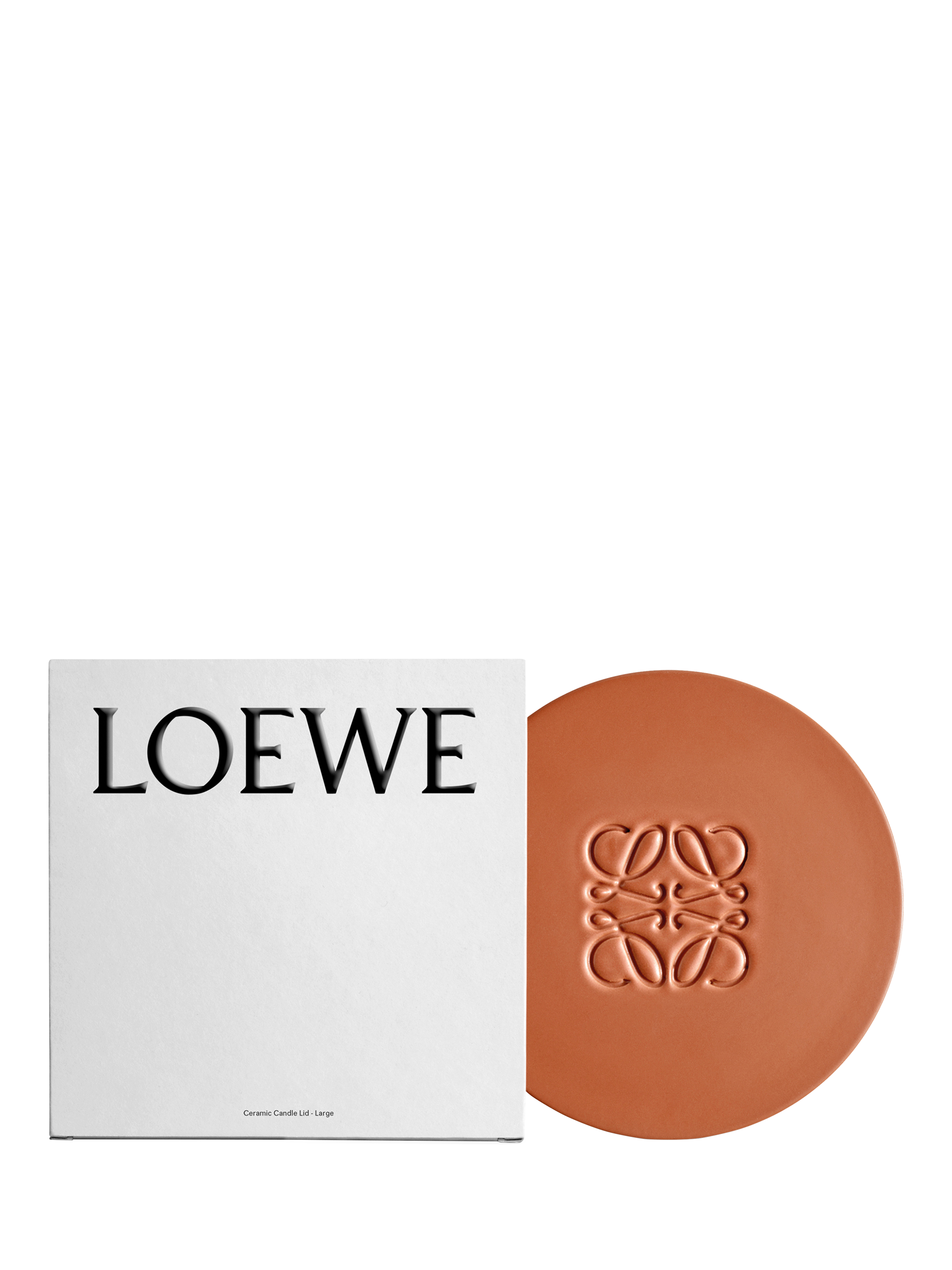 A circular Candle Lid in terracotta ceramic - the perfect accessory designed to protect your LOEWE Home Scents Scented Candle. The Candle Lid preserves the wax from dust and loss of fragrance between illuminations. It can also be used as a base when the candle is lit.