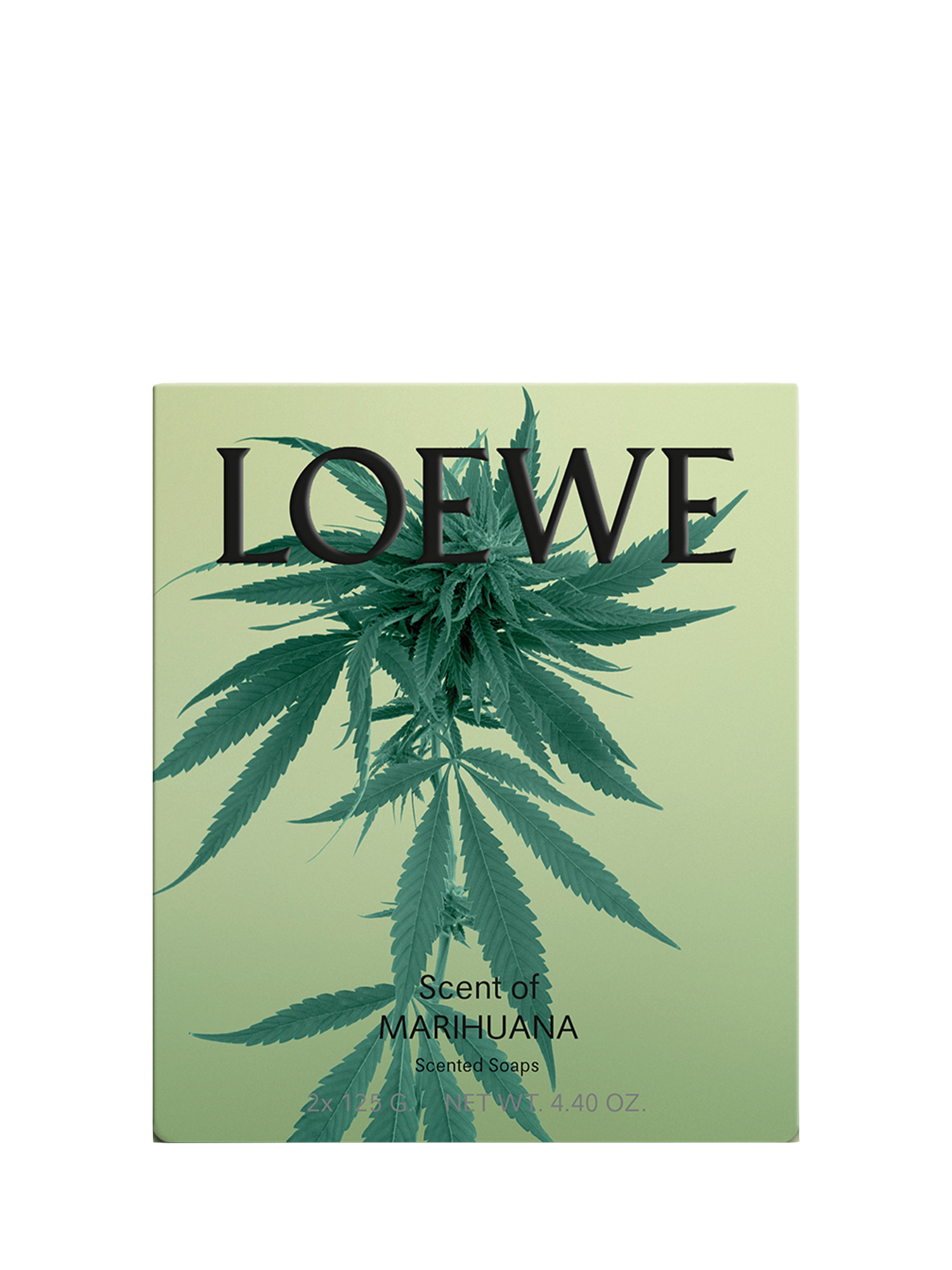 Block-shaped cleansing bar featuring the LOEWE Home Scents Scent of Marihuana fragrance - a soothing aroma of the Sativa plant that leaves the skin feeling soft and refreshed.