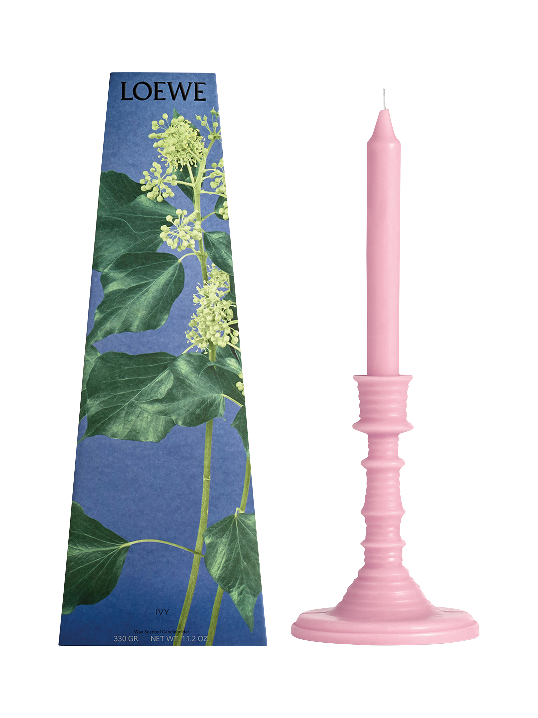 A candlestick-shaped candle, crafted in wax, with ivy essence.