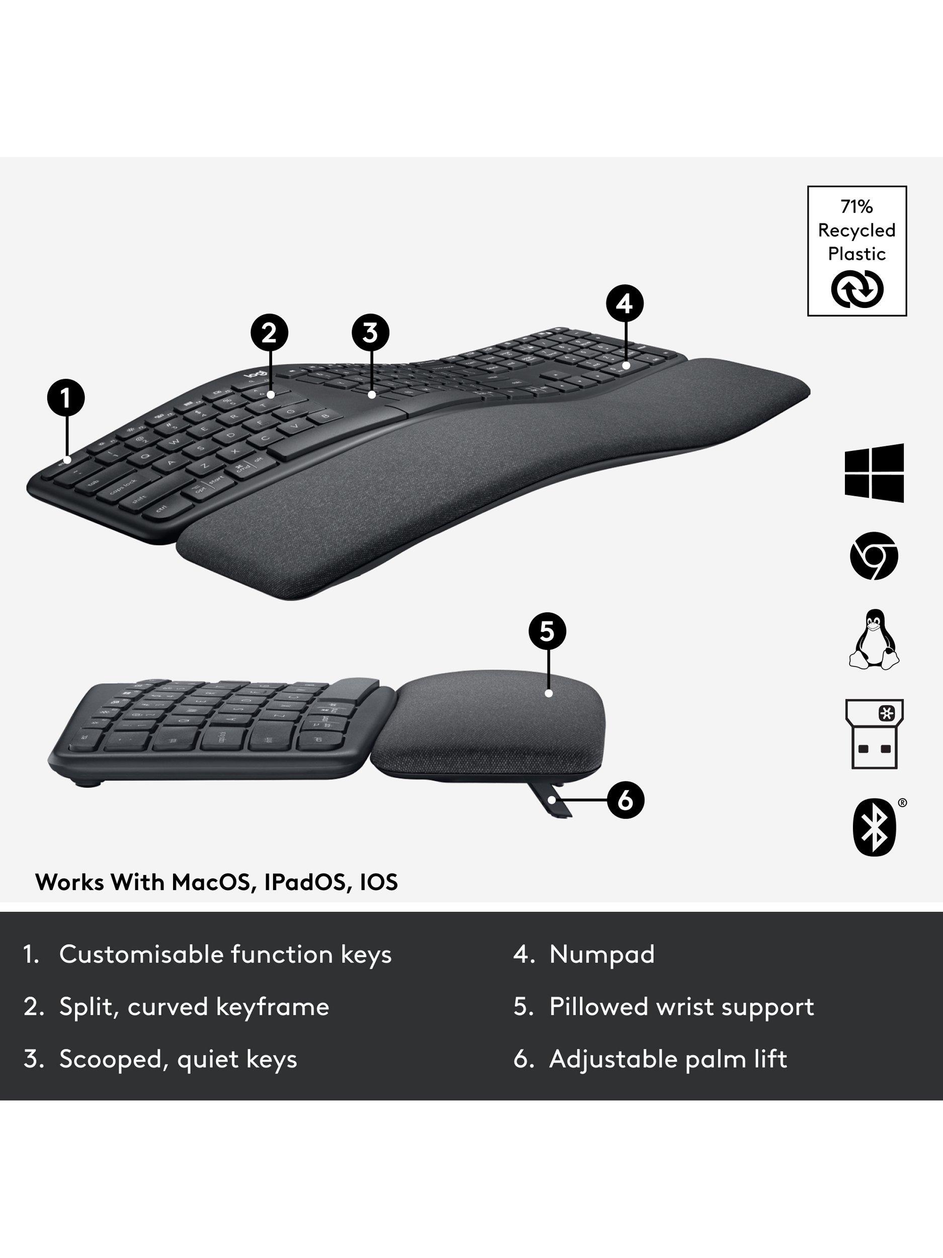 - Logitech ERGO K860, Ergonomic Bluetooth Keyboard