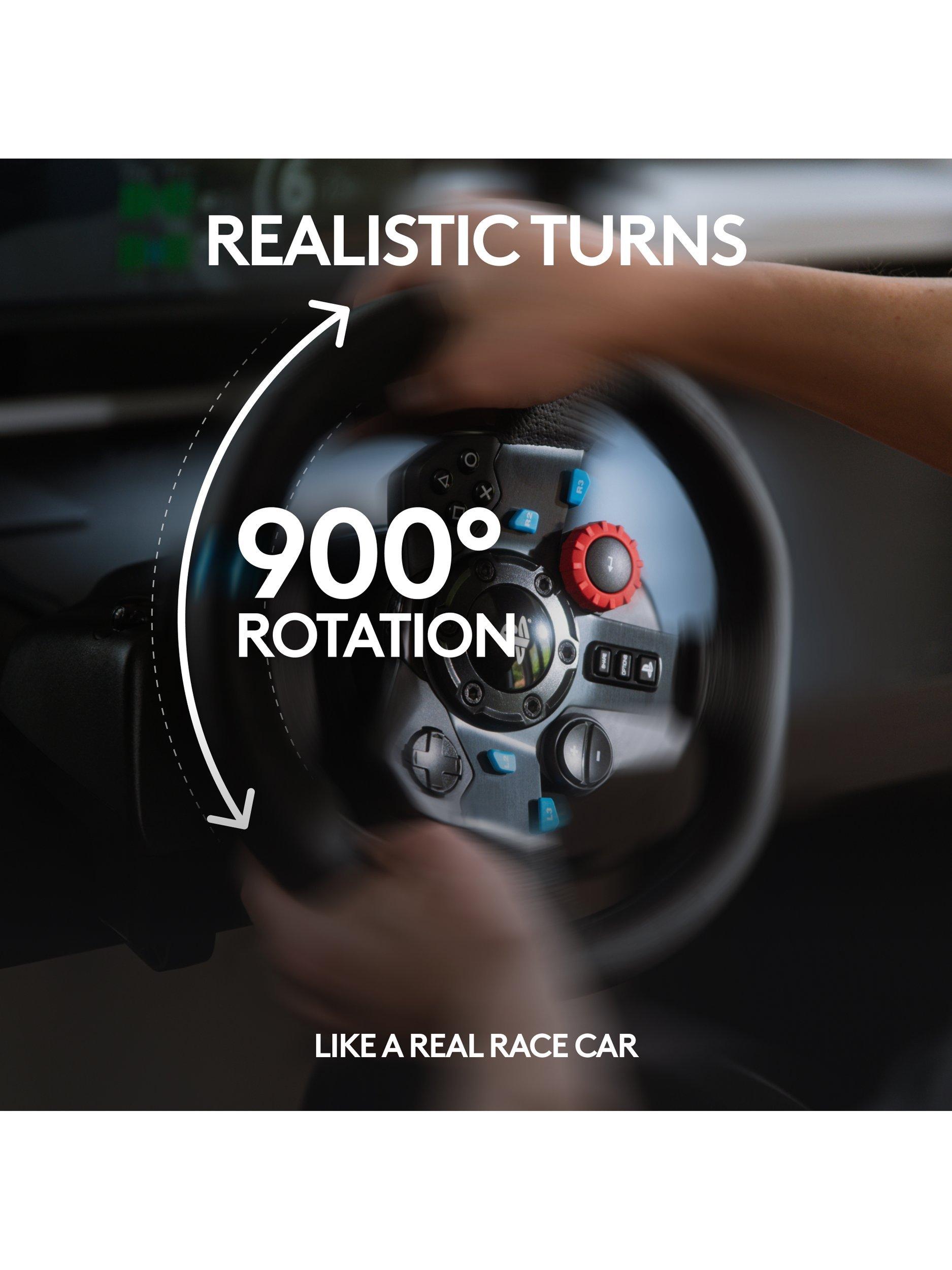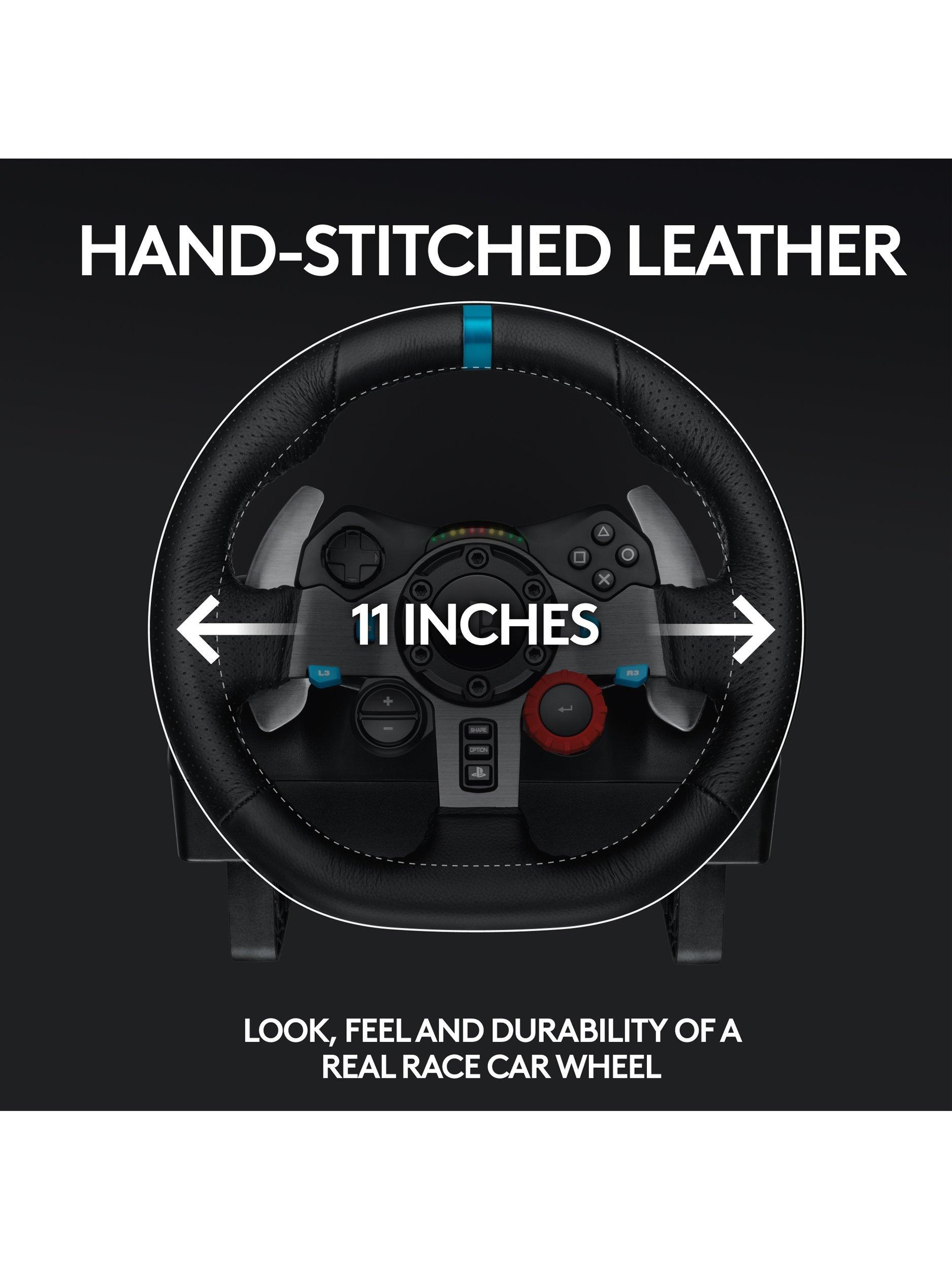 Made from hand-stitched leather, dual-motor force feedback in the wheel brings every tire slip and terrain change to life. Stainless steel paddle shifters and RPM indicator LEDs help you make crisp, fluid gear transitions without taking your eyes off the track, and the 900° wheel rotation means super precise corners are a cinch.