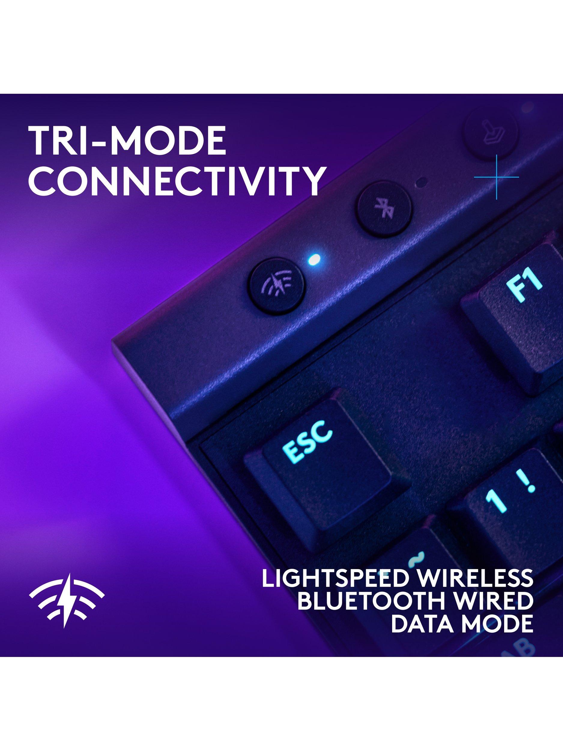 The Logitech G515 Lightspeed TKL offers a slim profile and tenkeyless design with tri-mode connectivity via Lightspeed wireless, Bluetooth, or wired data transfer.