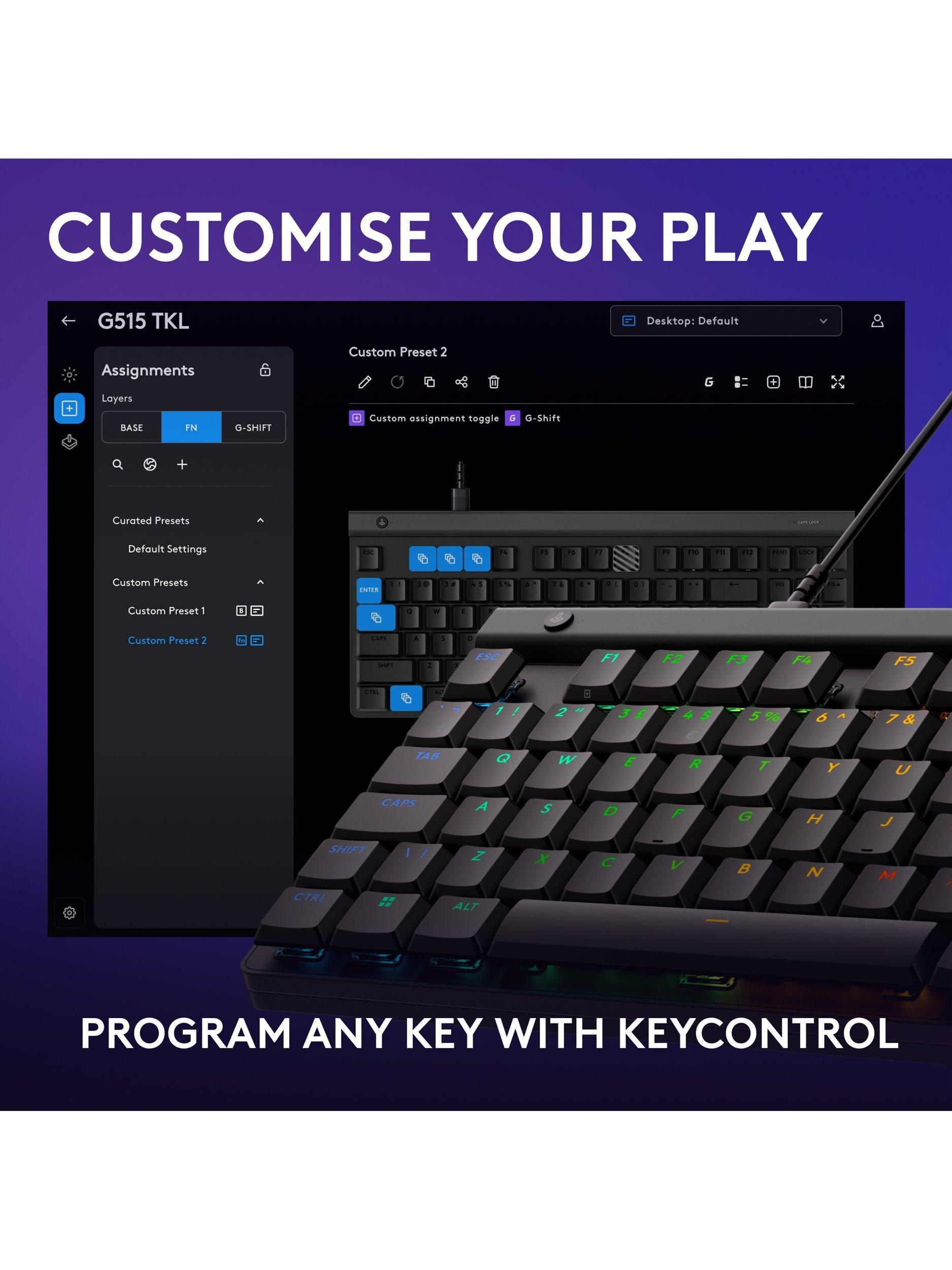 Ultra-thin design meets high-performance engineering with Logitech G515 TKL. Low-profile, factory-lubed GL mechanical switches and double-shot PBT keycaps offer durability without compromise to accuracy.