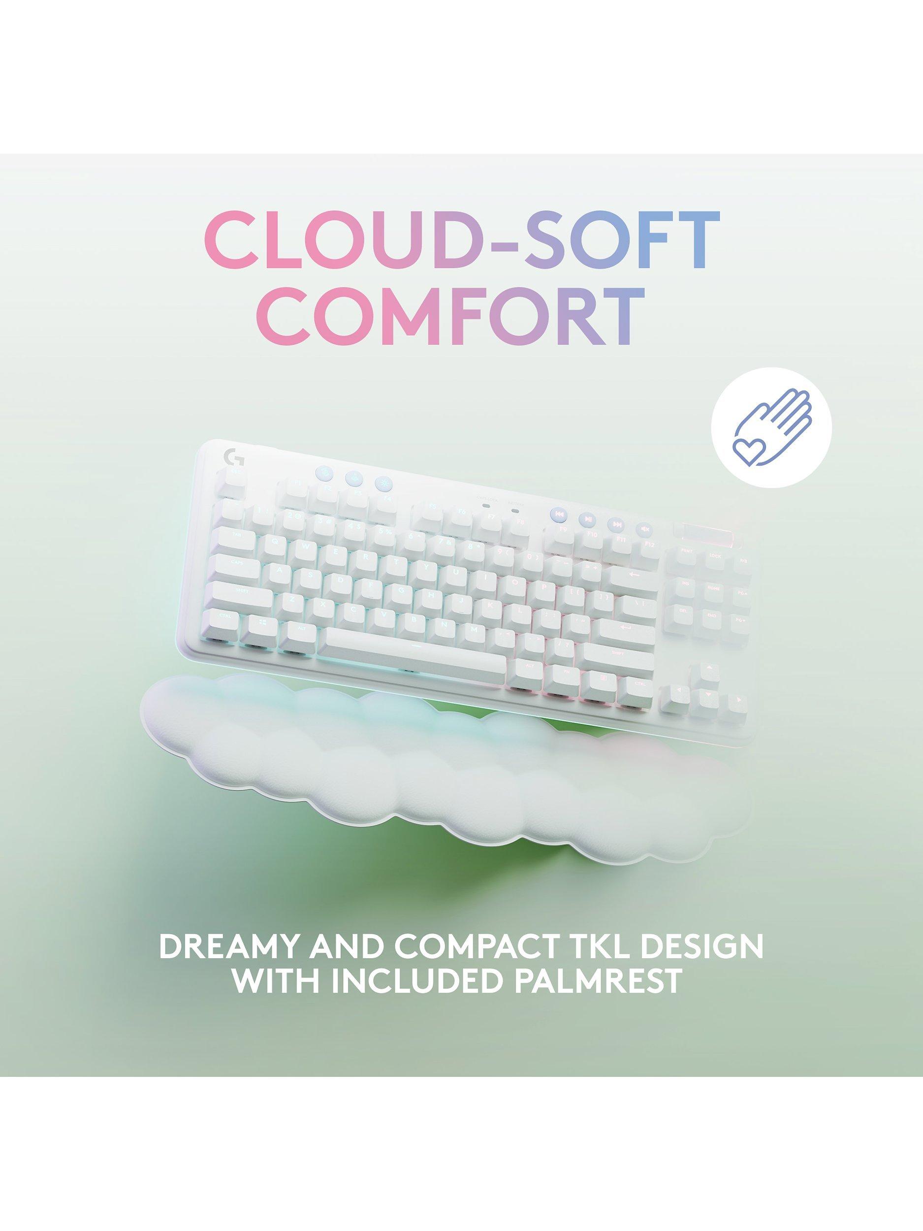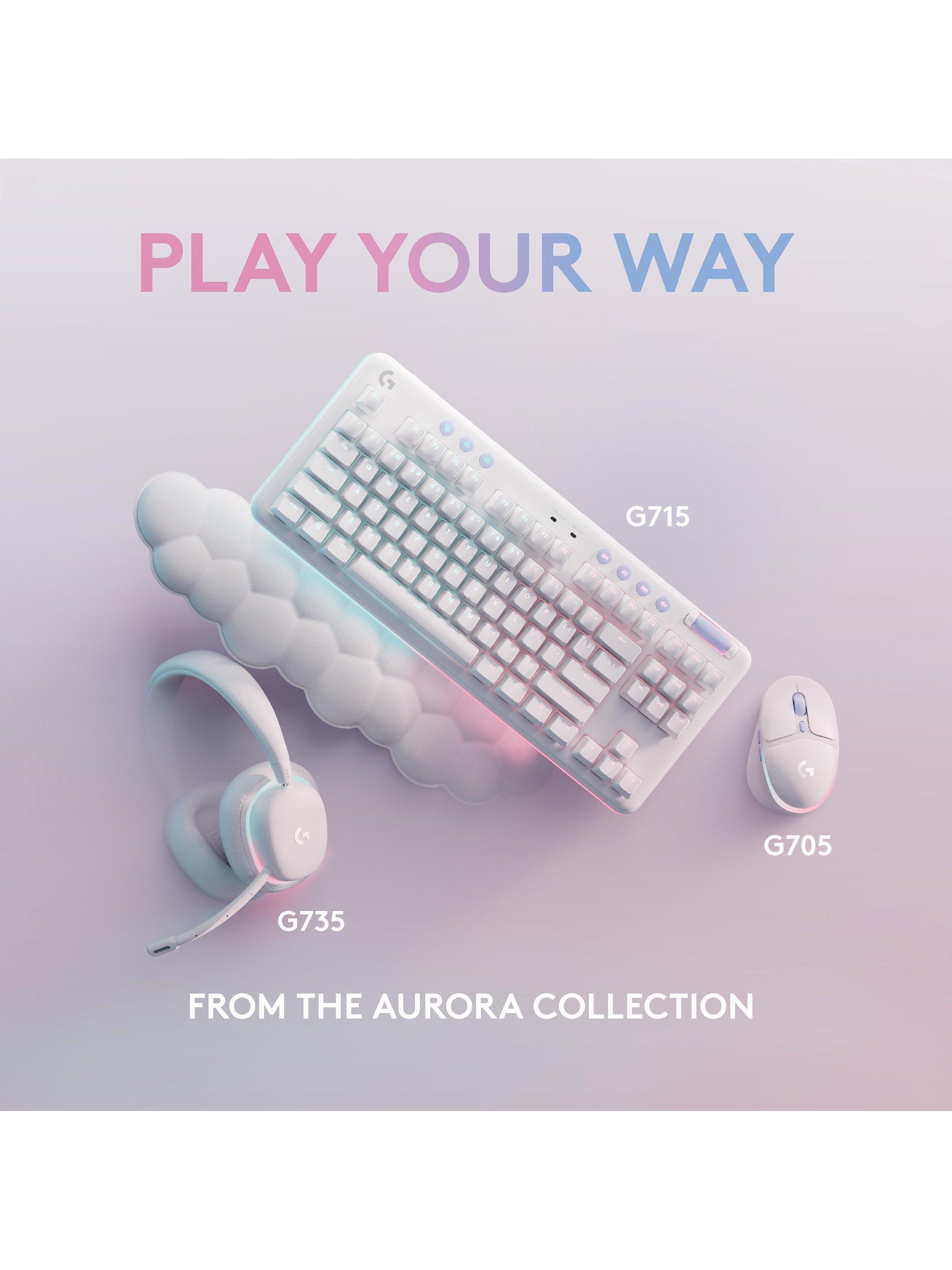 Part of Logitech’s Aurora Collection, the G715 wireless gaming keyboard is compact, comfy, combining low-key vibes with high-key performance. This tenkeyless (no number pad) keyboard is fully equipped with Lightspeed wireless and Bluetooth connectivity, ethereal RGB lighting, and comes with a cloud-soft palm rest for an added luxuriously comfortable touch.