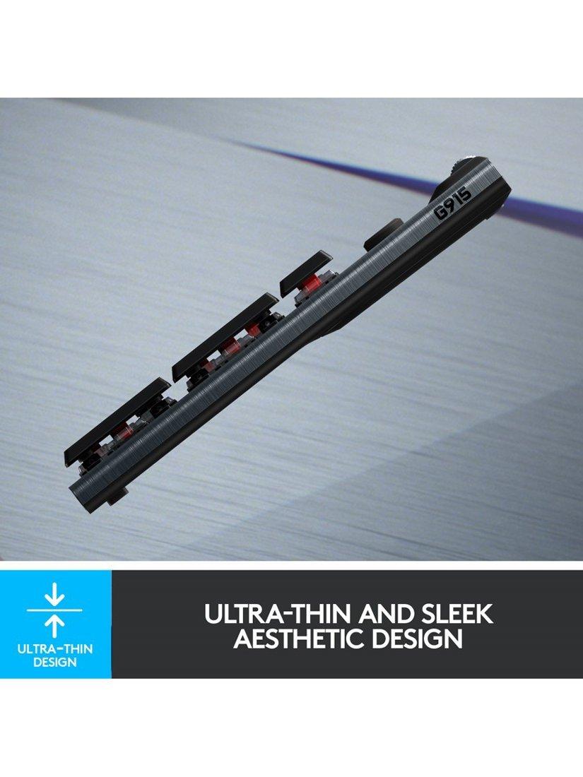 The G915 features wireless technology, customisable RGB and low-profile mechanical keys in a sleek, ultra-thin design.