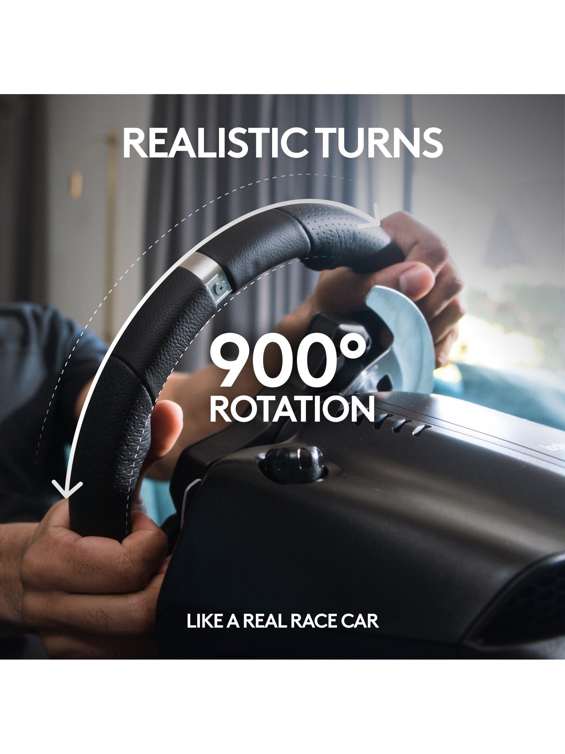 Made from hand-stitched leather, dual-motor force feedback in the wheel brings every tire slip and terrain change to life. Stainless steel paddle shifters and RPM indicator LEDs help you make crisp, fluid gear transitions without taking your eyes off the track, and the 900° wheel rotation means super precise corners are a cinch.