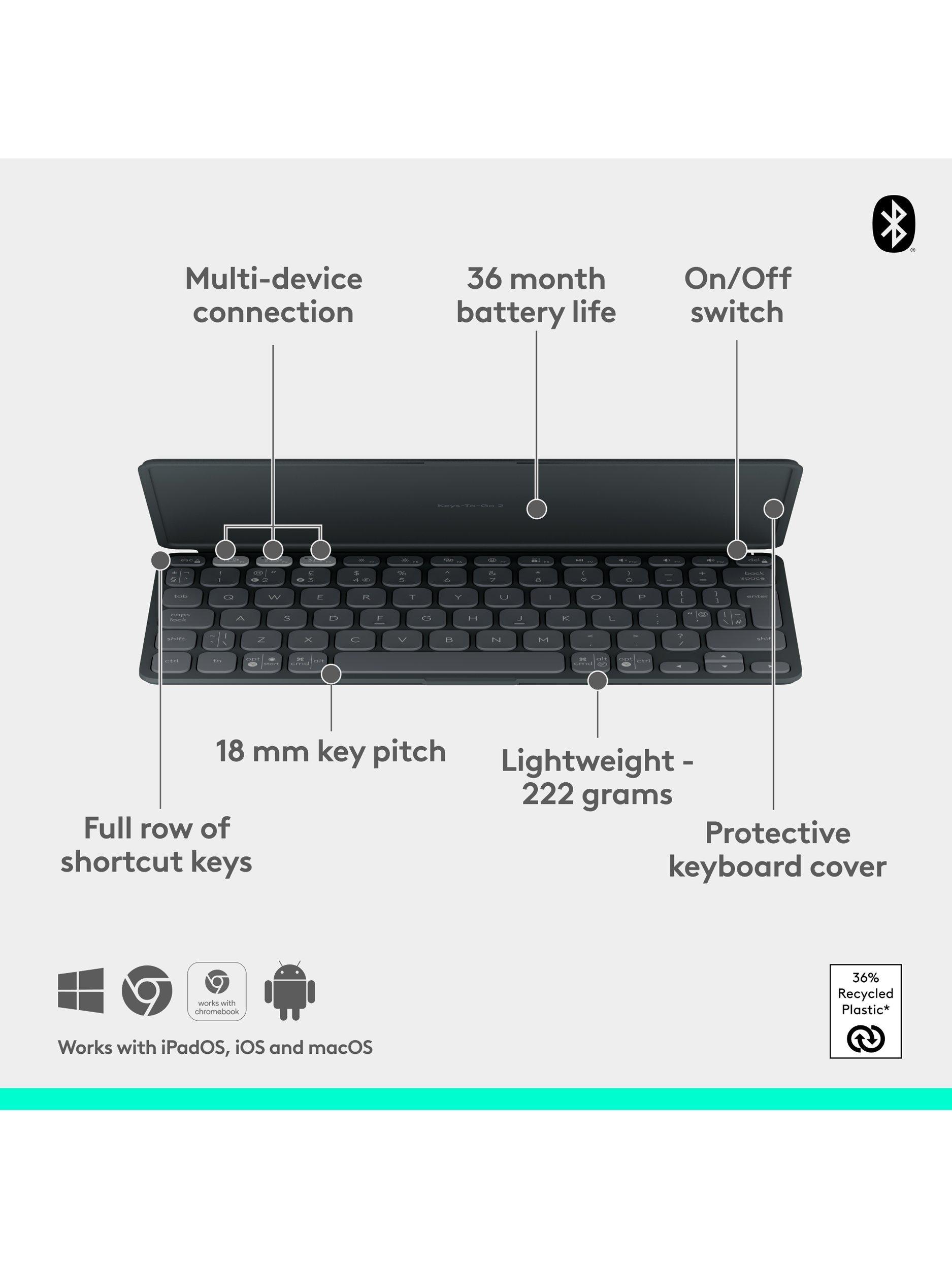 Keys-To-Go 2 is a slim, ultra-portable tablet keyboard that goes anywhere. Make great typing happen on tablets, phones, and laptops with Logitech's super-portable wireless keyboard.