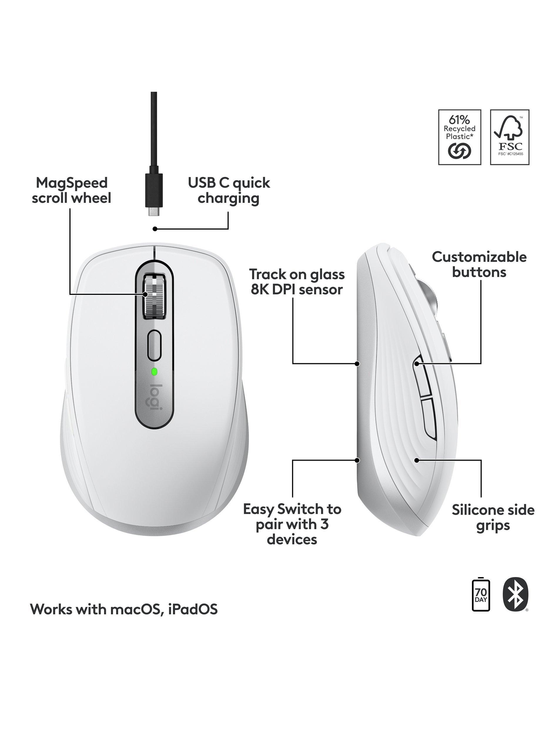 MX Anywhere 3S for Mac wireless mouse introduces quiet clicks - the same satisfying feel but with less click noise for less distraction and more focus.