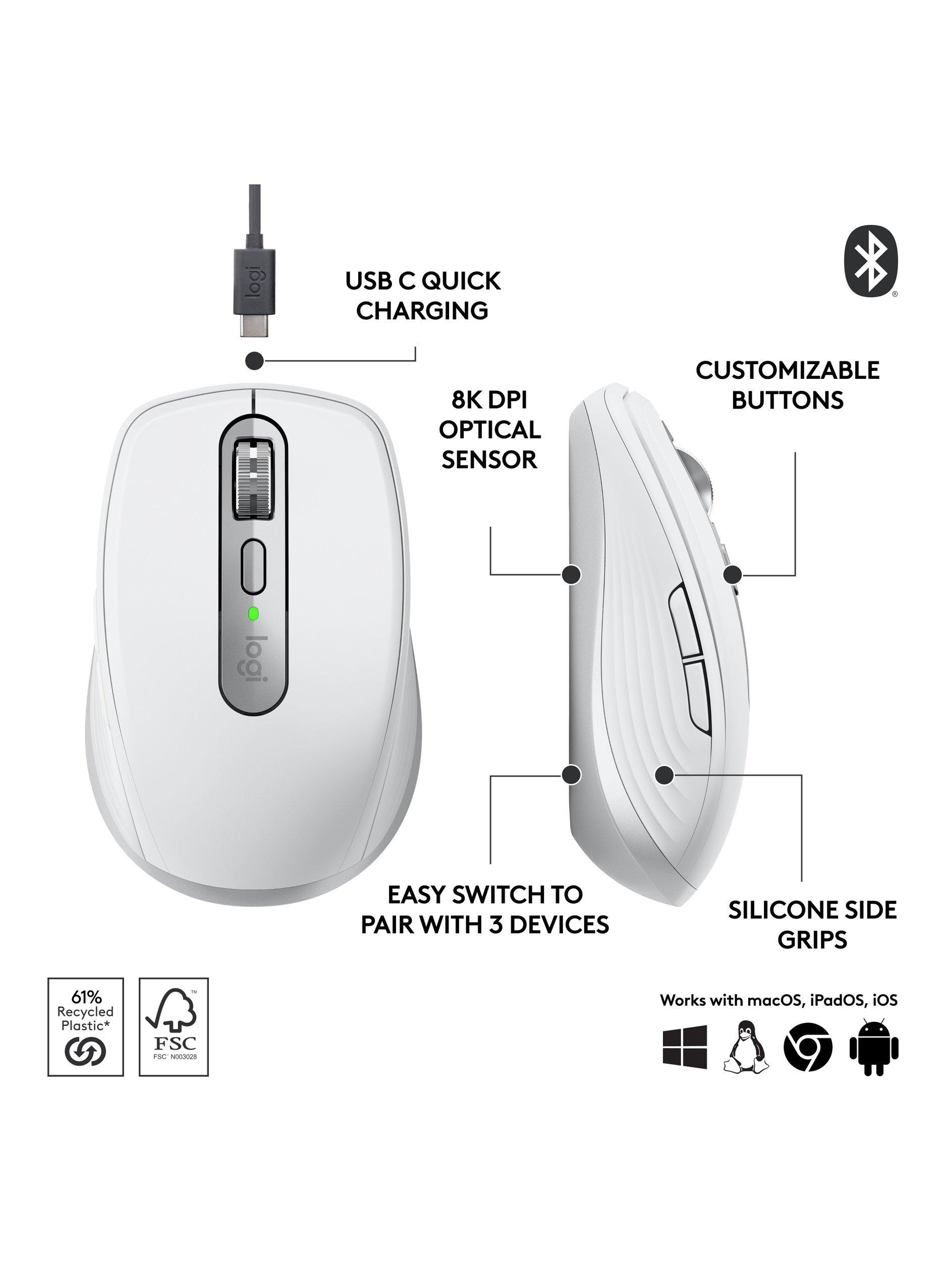 The contoured shape follows the natural curve of your hand for improved comfort. Compact and wireless, the mouse fits easily with your laptop in a bag, so you can take it anywhere. The MX Anywhere is designed to be equally comfortable for both left and right-handed users.