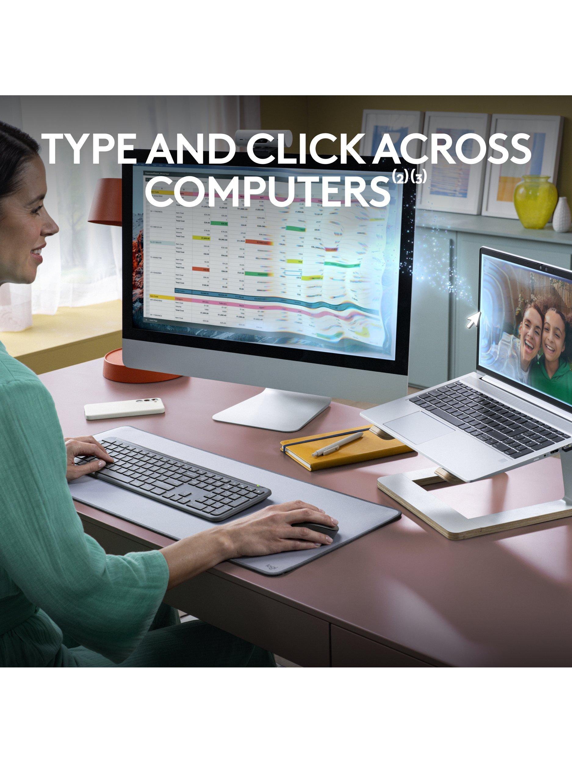 Use one mouse and keyboard across more than one computer …even different operating systems. Connect them via Bluetooth or Logi Bolt Receiver to effortlessly transfer text, images, and files between computers with ease. (You need to have the Logi Options+ app installed, and all your computers connected to the same network.)