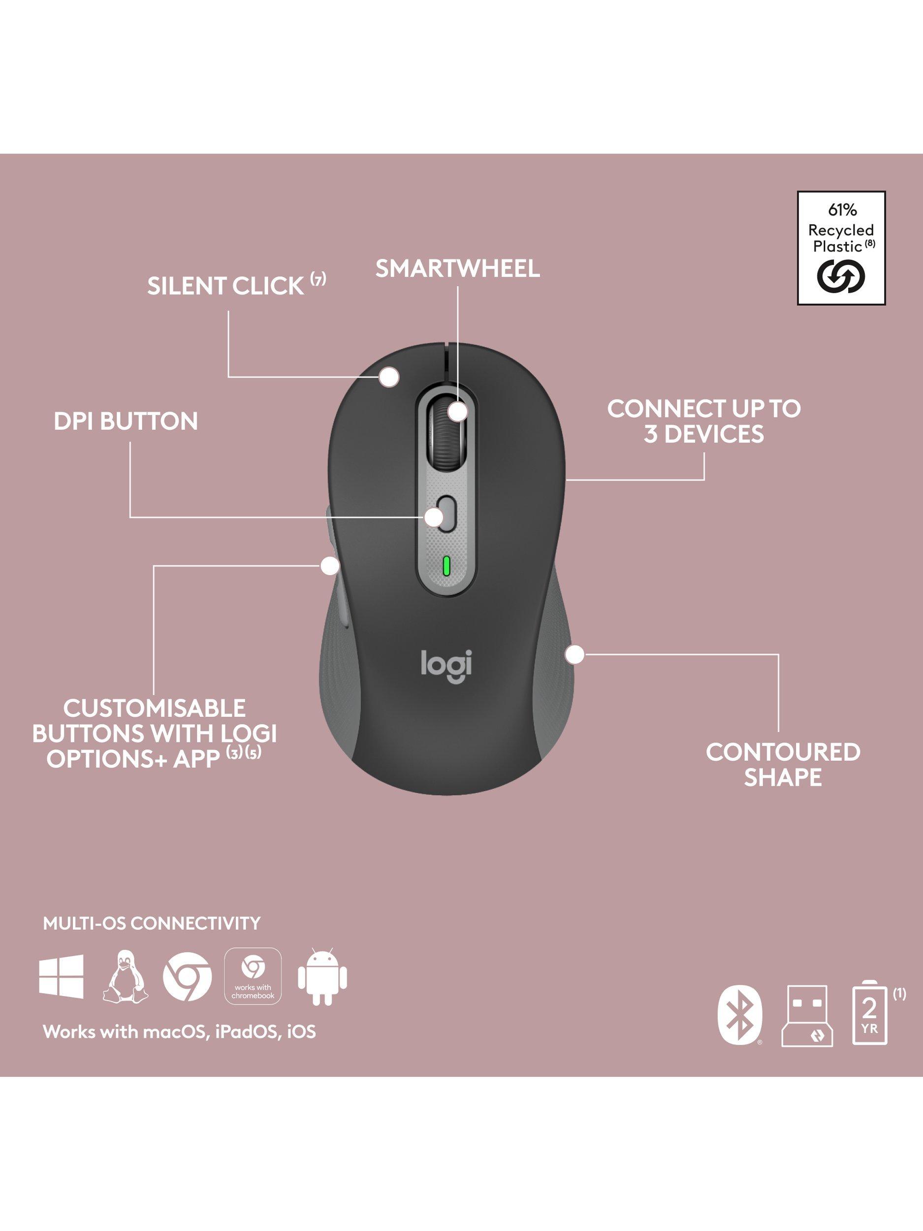 Focus on the task at hand thanks to quiet typing and clicking. The Signature Plus Mouse M750 with SilentTouch technology produces much less click noise.