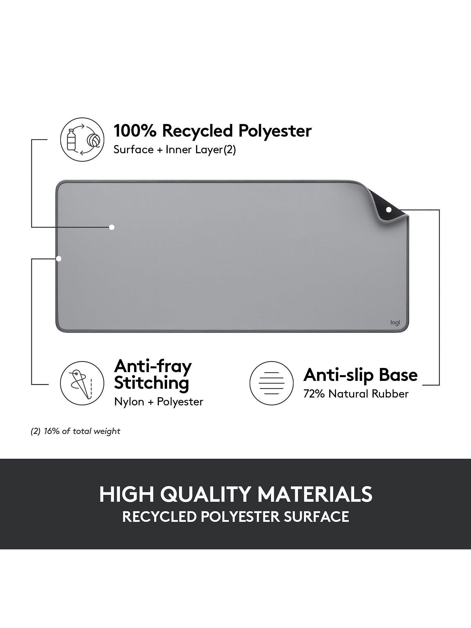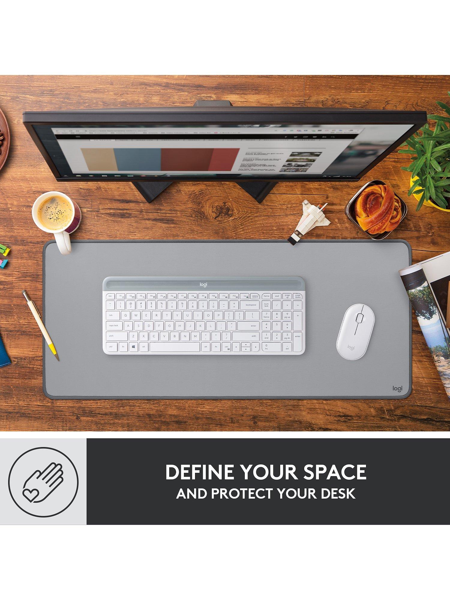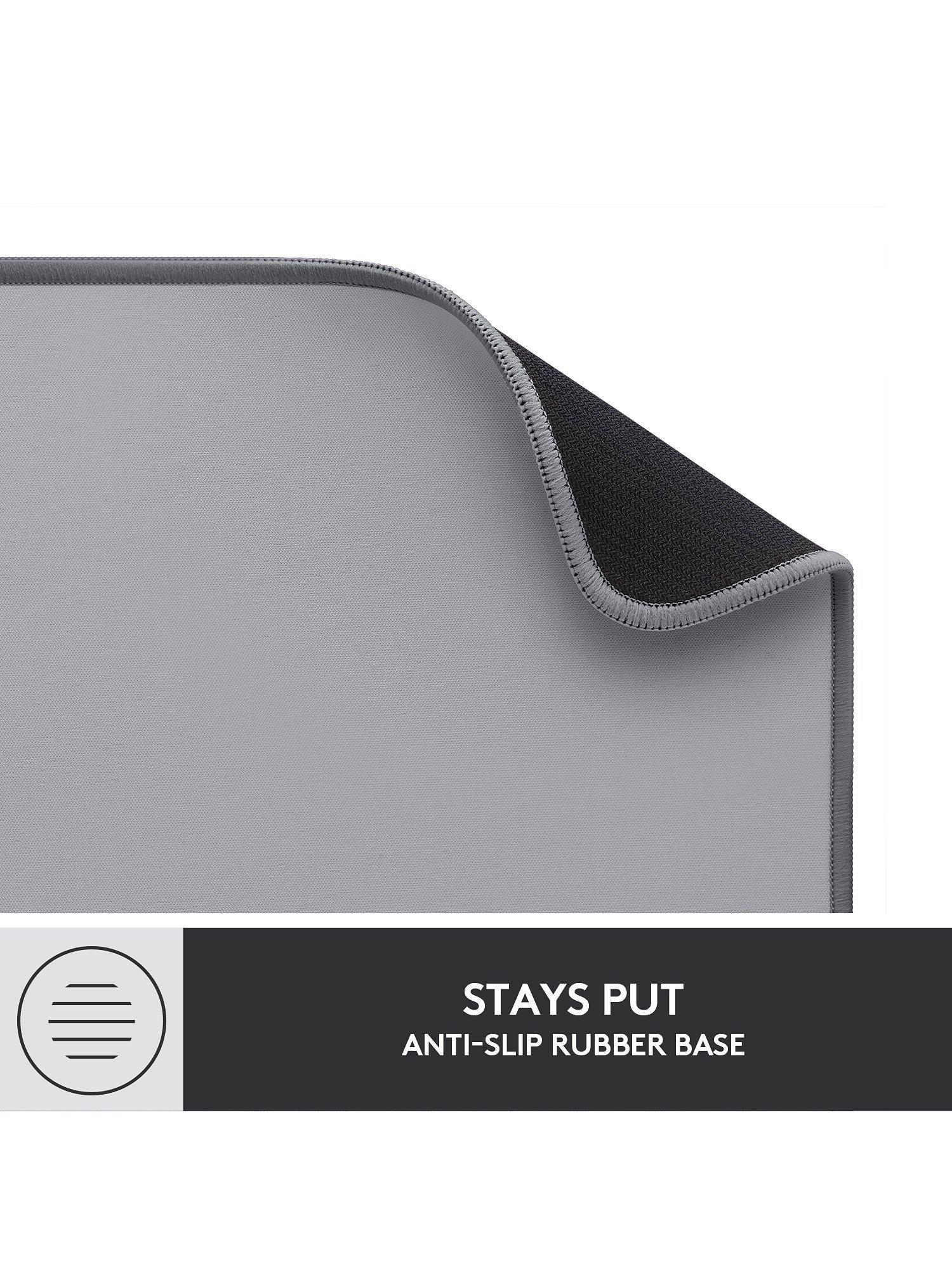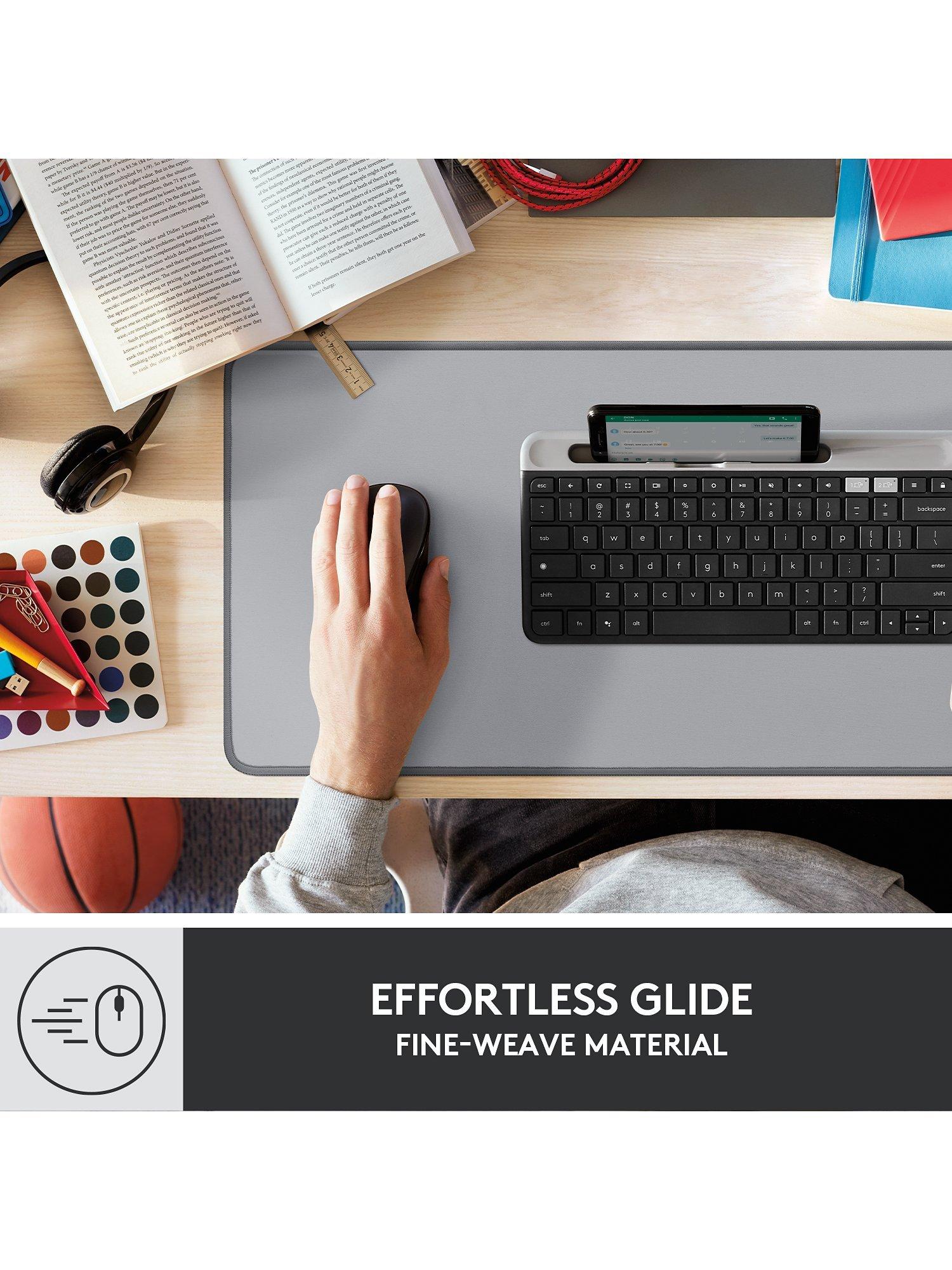 Logitech's Desk Mat lets you find your glide and define your style, all while keeping your desk protected. The smooth, comfy, fine-weave surface delivers an effortless, silent glide for your mouse.