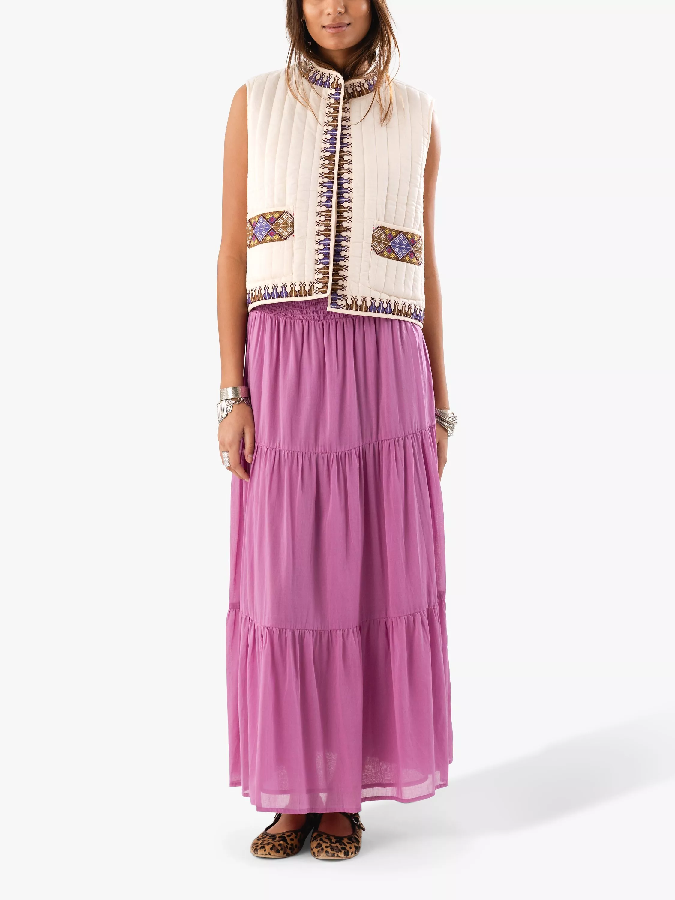 The Cairo vest will be a charming addition to your wardrobe. With its light quilting, the vest not only has a stylish look but also a comfortable fit, making it ideal for cooler days. The vest ensures you stay warm without feeling heavy, and whether you're headed to a casual gathering or a more formal event, the Cairo vest will undoubtedly elevate your outfit. It is easy to style and can be paired with both simple and patterned elements.