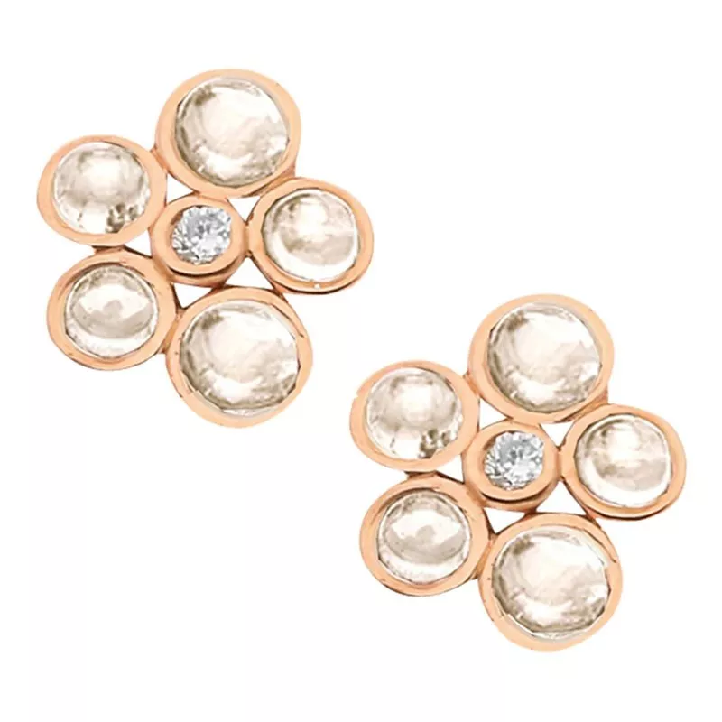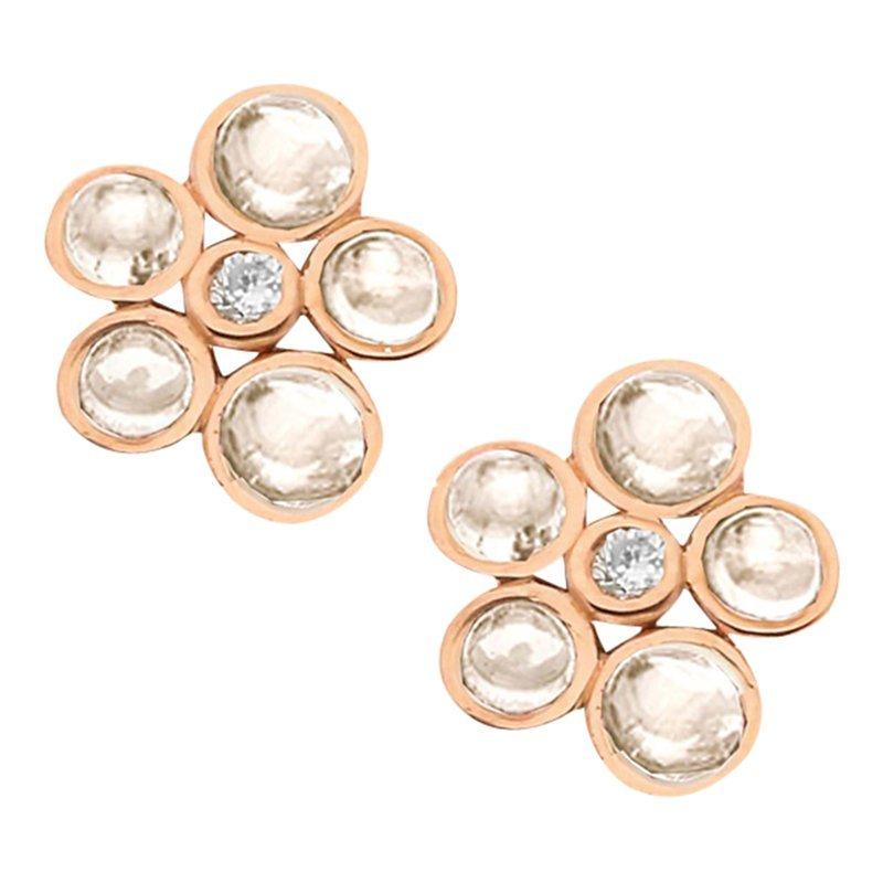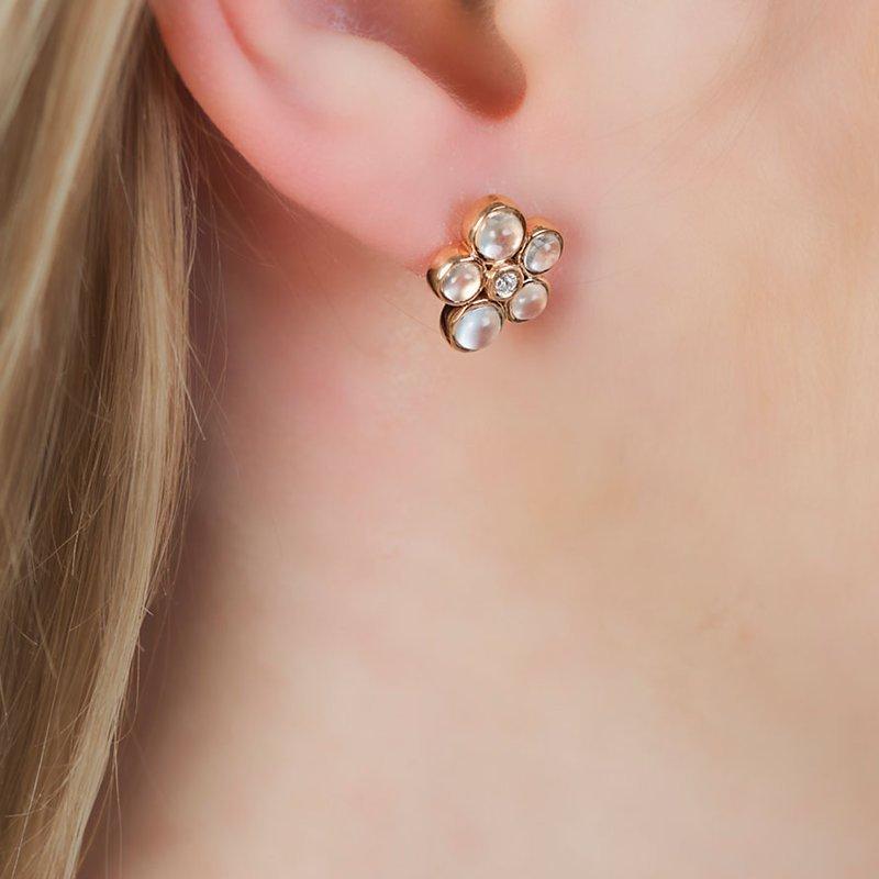 These bright and beautiful earrings feature 5 stunning cabochon stones surrounding a single sparkling diamond in a stylised floral pattern.