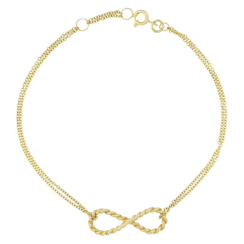 A beautifully crafted 9ct gold bracelet full of subtle personality with an elegant rope design infinity link. An ideal accessory for any occasion, this bracelet is adjustable to 17cm and fastens with a spring ring clasp.