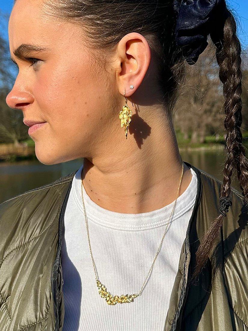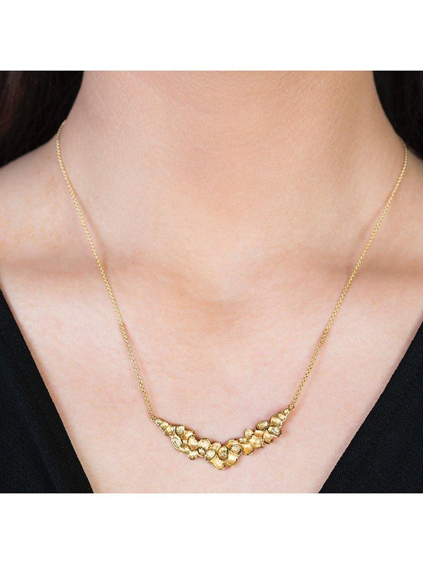 This lovely necklace is crafted from 9ct gold in a beautiful pattern of gathered leaves.