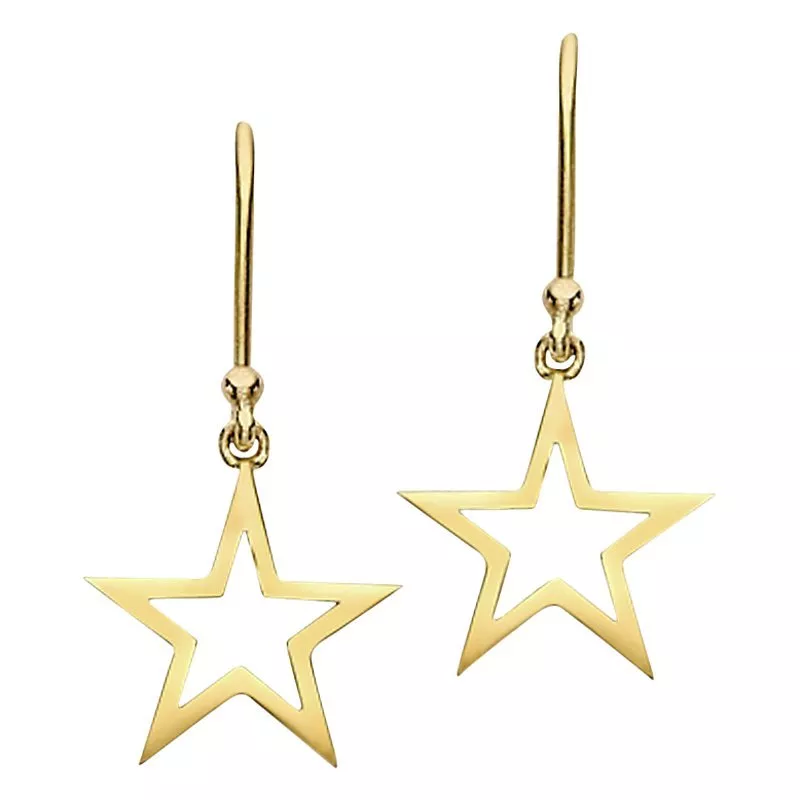 From the Portobello Starry Night collection by London Road. In a modest open star design, they're composed of 9ct yellow gold. With hook fittings.