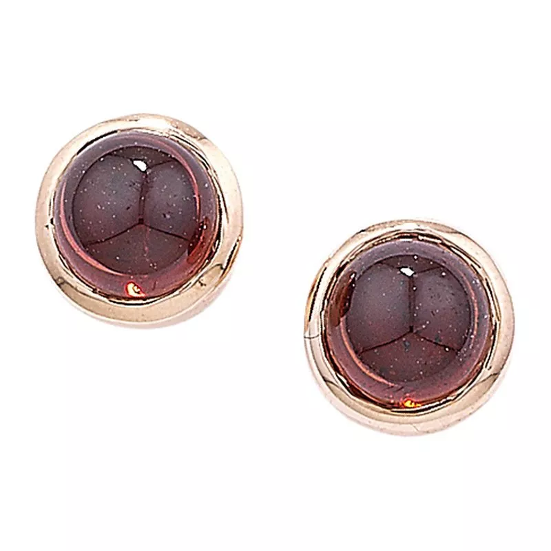 Crafted from 9 carat rose gold, the pair boasts a cabochon-cut semi-precious stone and features traditional butterfly fittings.