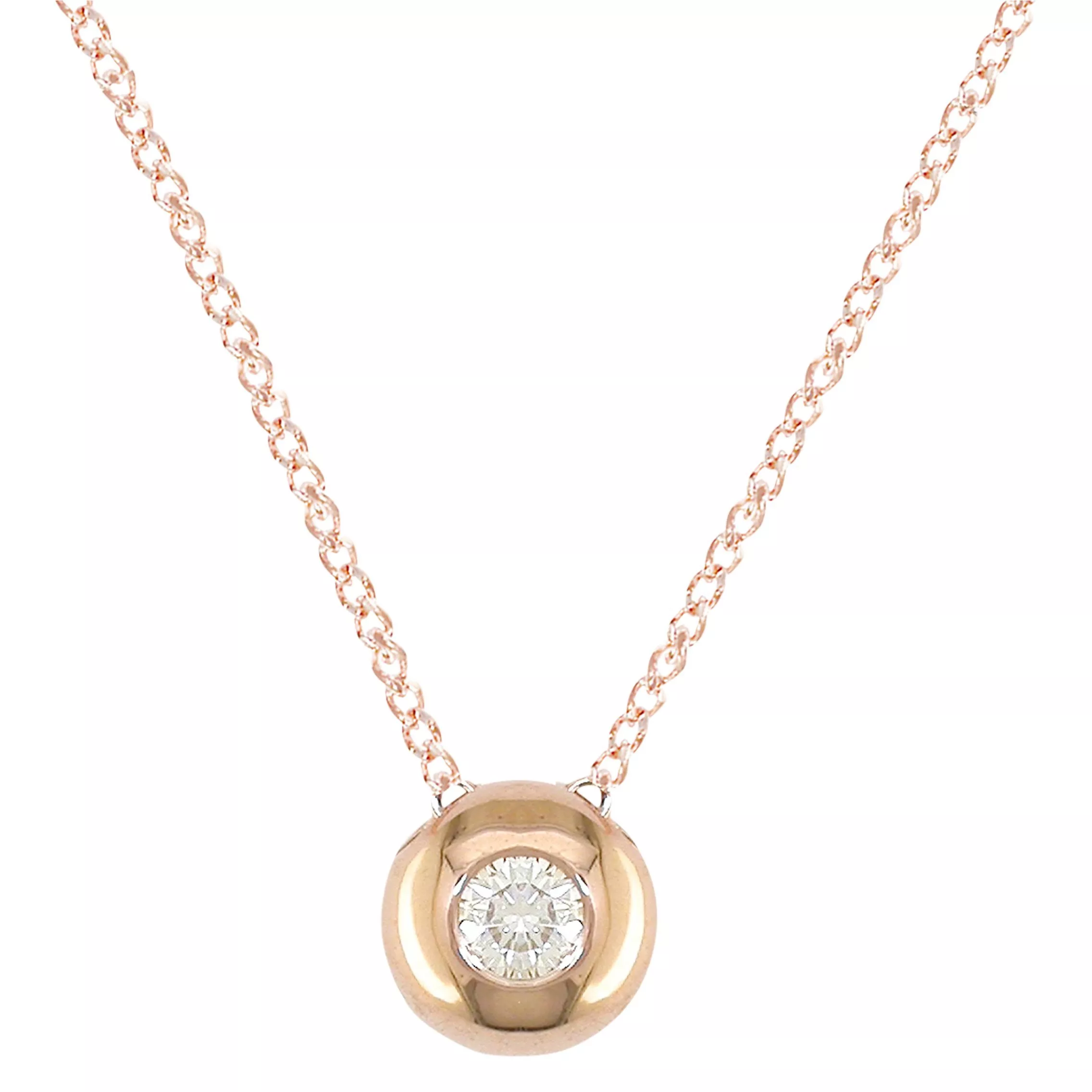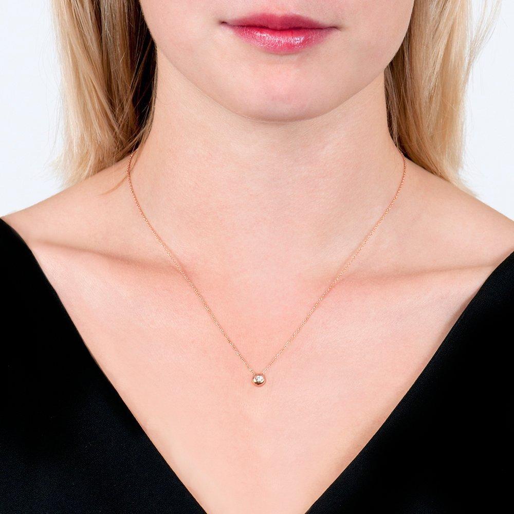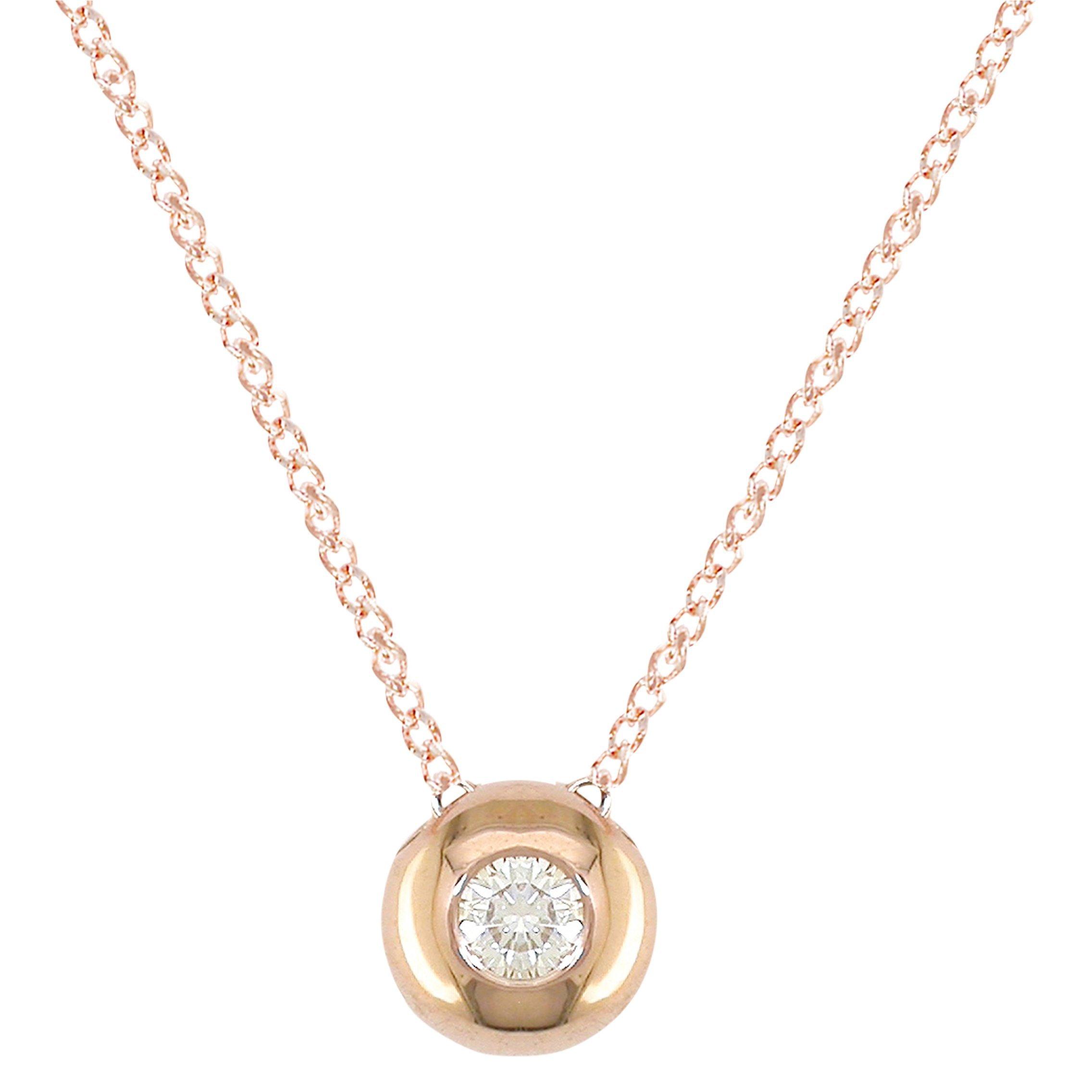 The pendant is set on a polished rose gold chain, with a slide setting that allows it to move comfortably on the chain as the wearer moves.
