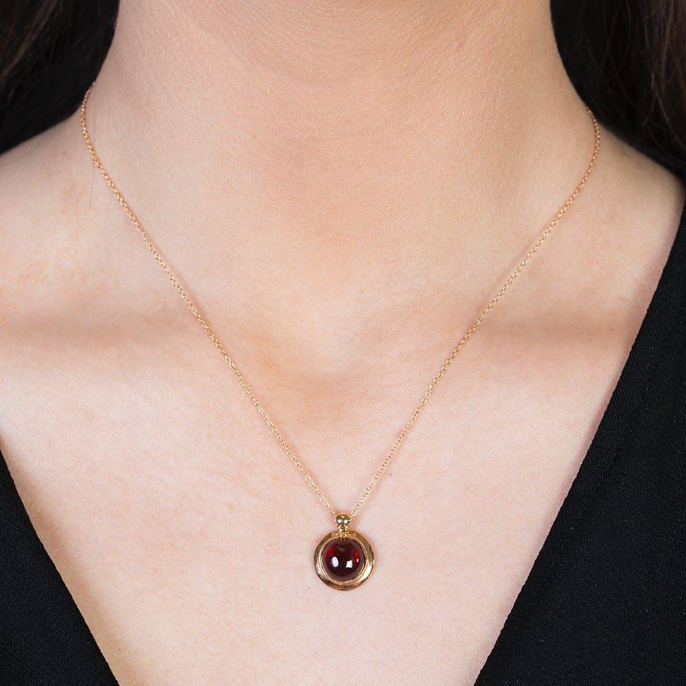 A smooth cabochon coloured stone, set in a simple, striking 9ct rose gold pendant. Ideal for adding some subtle colour to your outfit.