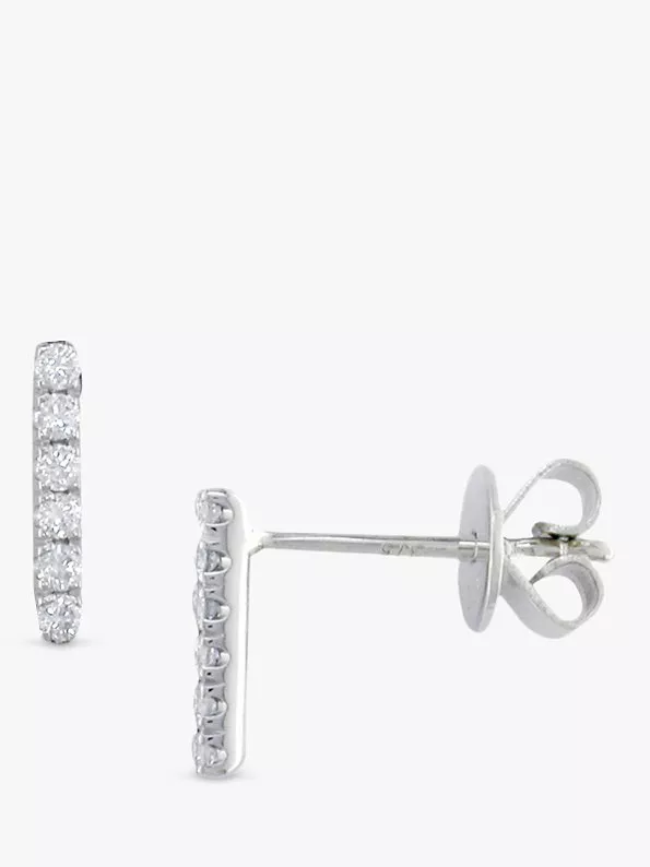 London Road9ct White Gold Diamond Bar Stud Earrings